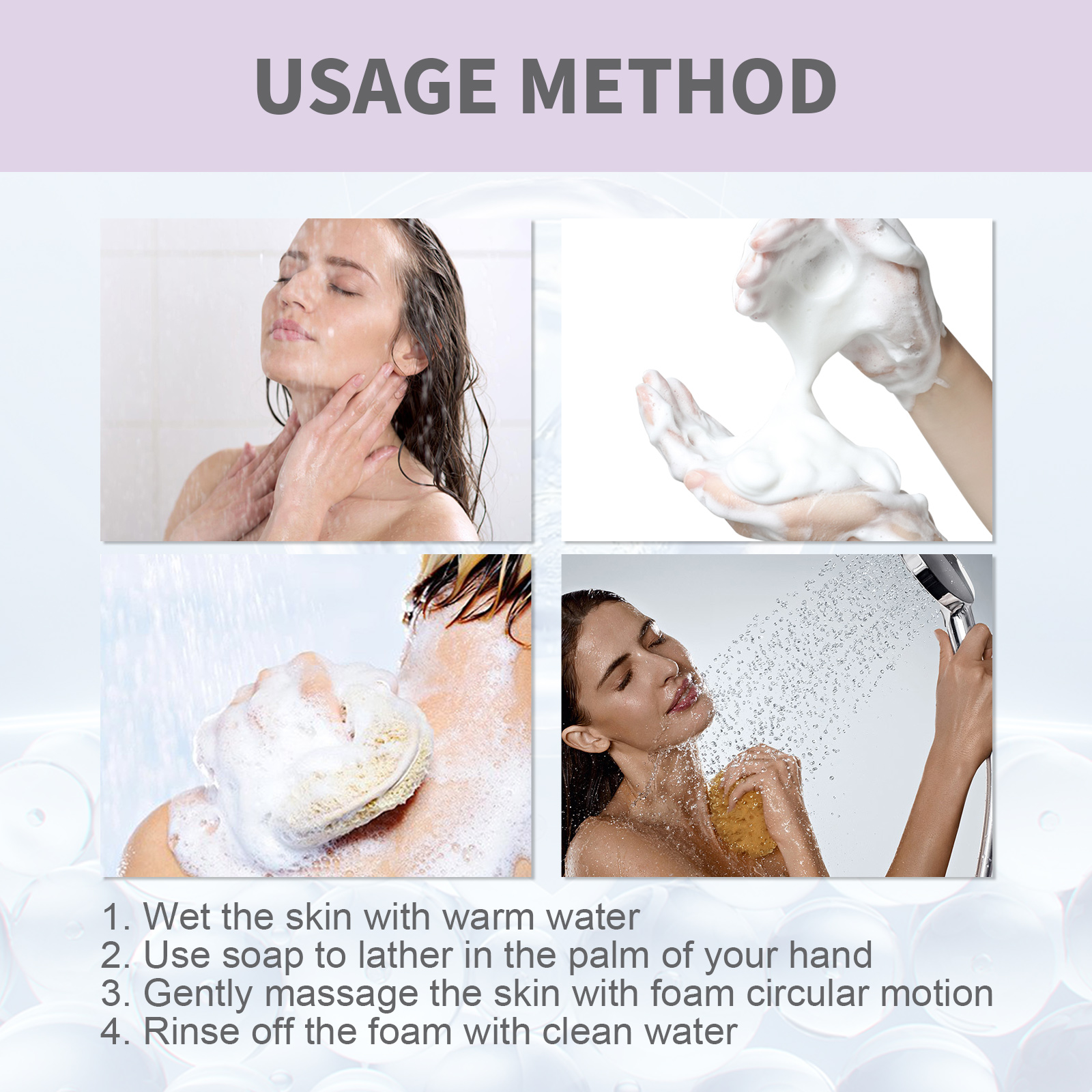 我们的身体焕白亮肤皂含有羊奶提取物、蚕丝蛋白、透明质酸。它可以深层清洁毛孔及污垢,平衡表层水油,强化肌肤屏障,提亮肤色,为肌肤补充维生素和矿物质,使肌肤纹理更加细腻。它的使用方法很简单:先用温水弄湿皮肤,将肥皂放在掌心搓出泡沫,用泡沫轻轻打圈按摩皮肤,最后用清水冲洗干净即可。适用于各种肤质,减少皮肤粉刺,去除多余的死皮,让您的肌肤更加光彩照人。