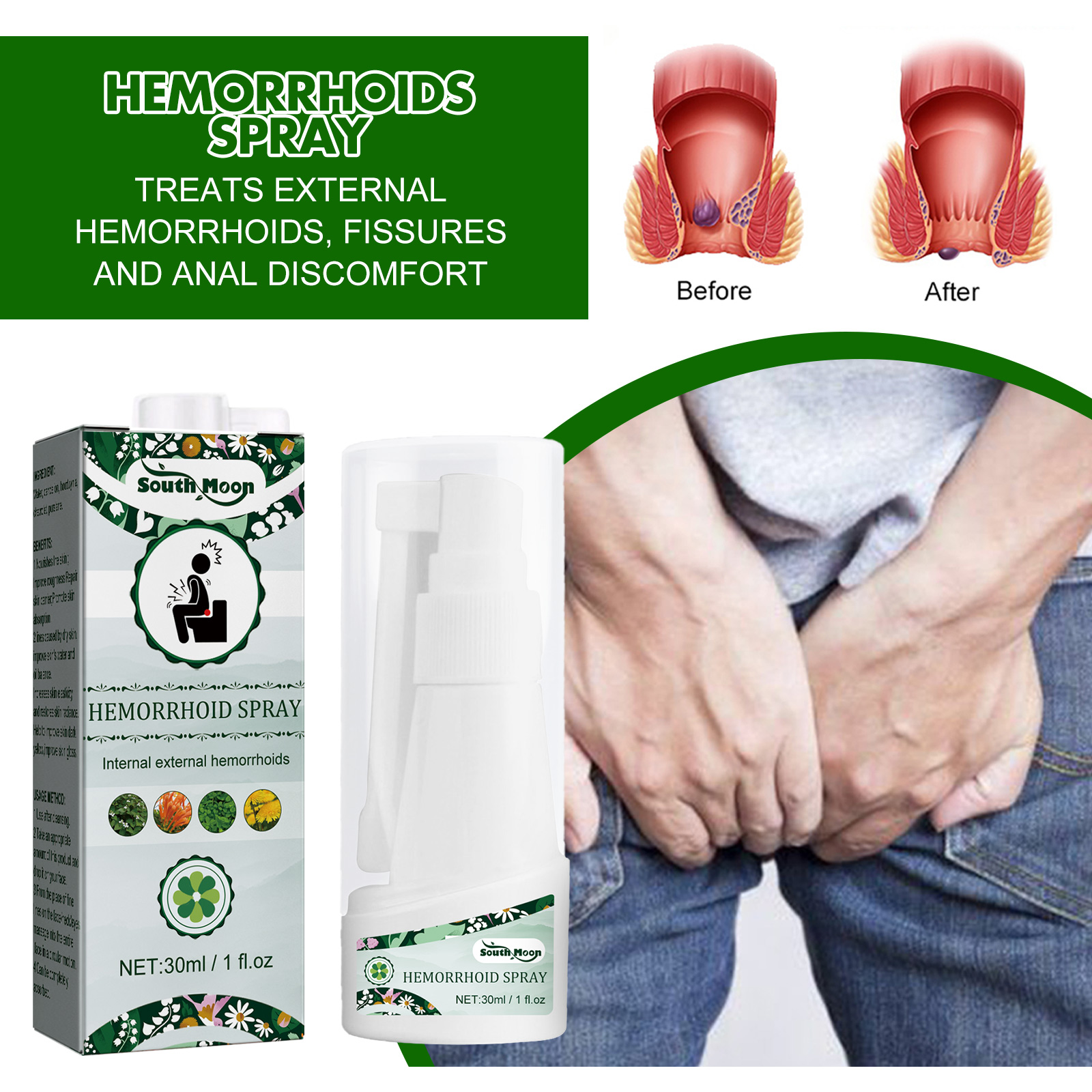 South Moon Hemorrhoids Spray, Relieve Swelling And Hemorrhoid Pain External Treatment For Broken Sore Anal Soothing Spray