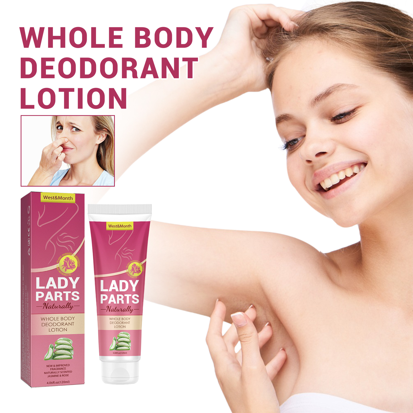 West&Month Whole Body Deodorant Lotion, Underarm Odor Clean Whitening Refreshing Deodorant Cream