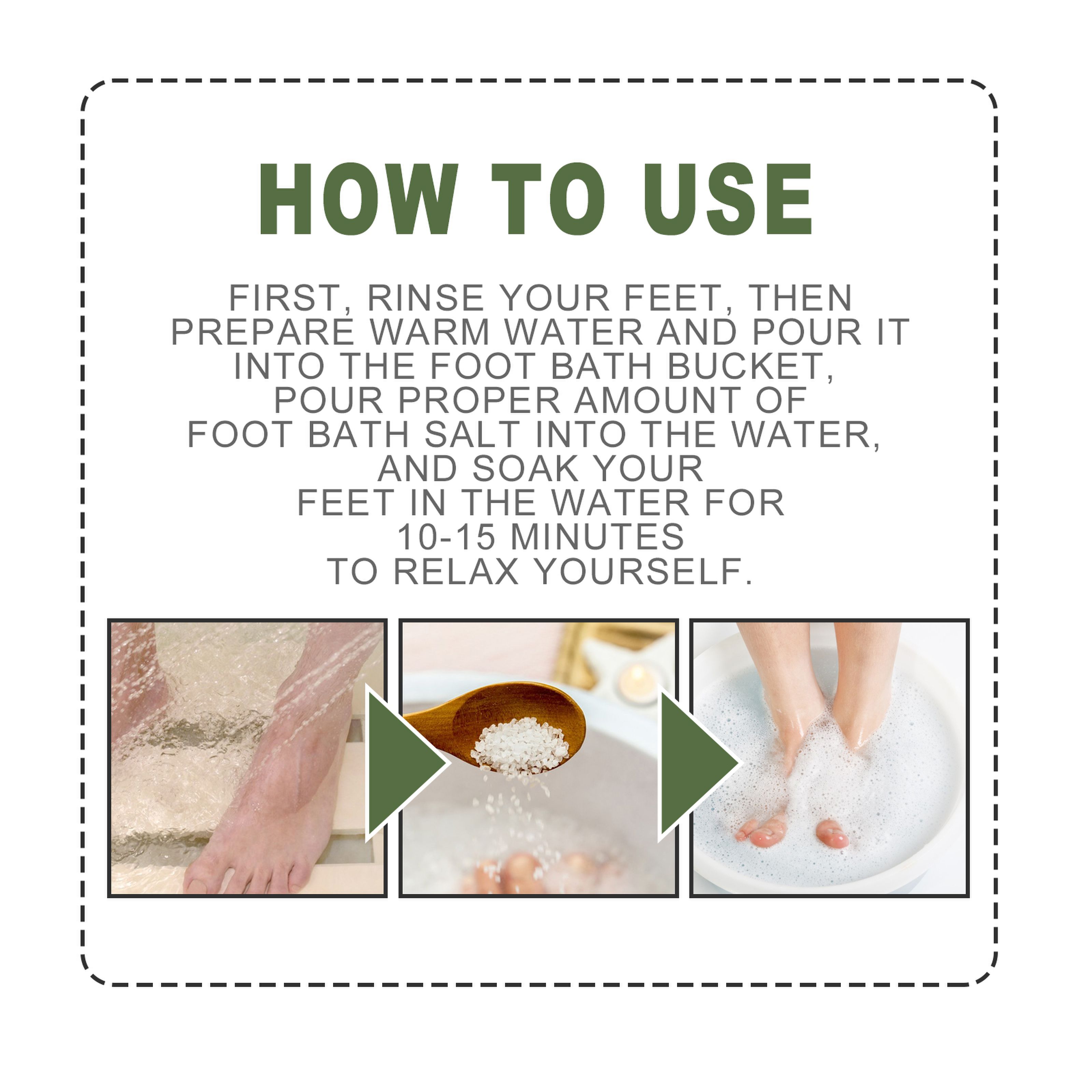 我们的足浴盐含有柠檬酸、氯化钠。它可以减肥排毒,加强血液循环,促进新陈代谢,纤体排毒。它的使用方法很简单:首先,洗净你的脚,然后准备温水,倒入足浴桶,在水中倒入适量的足浴盐,将你的脚浸泡在水里10-15分钟,放松自己。足浴盐帮助放松,提高新陈代谢,加强血液循环。