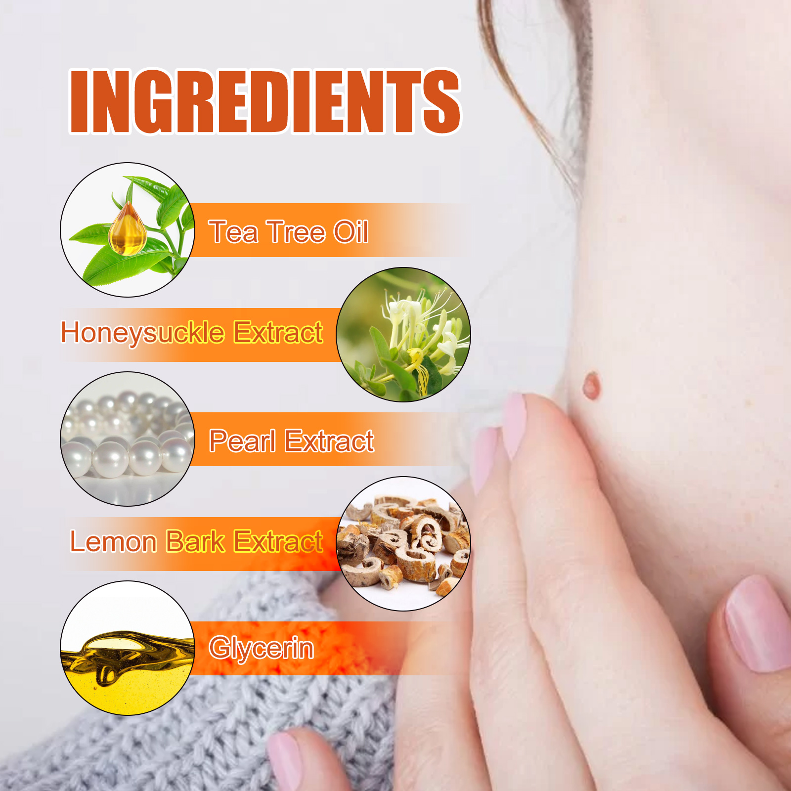 | 成分 | 茶树油、金银花提取物、珍珠提取物 |