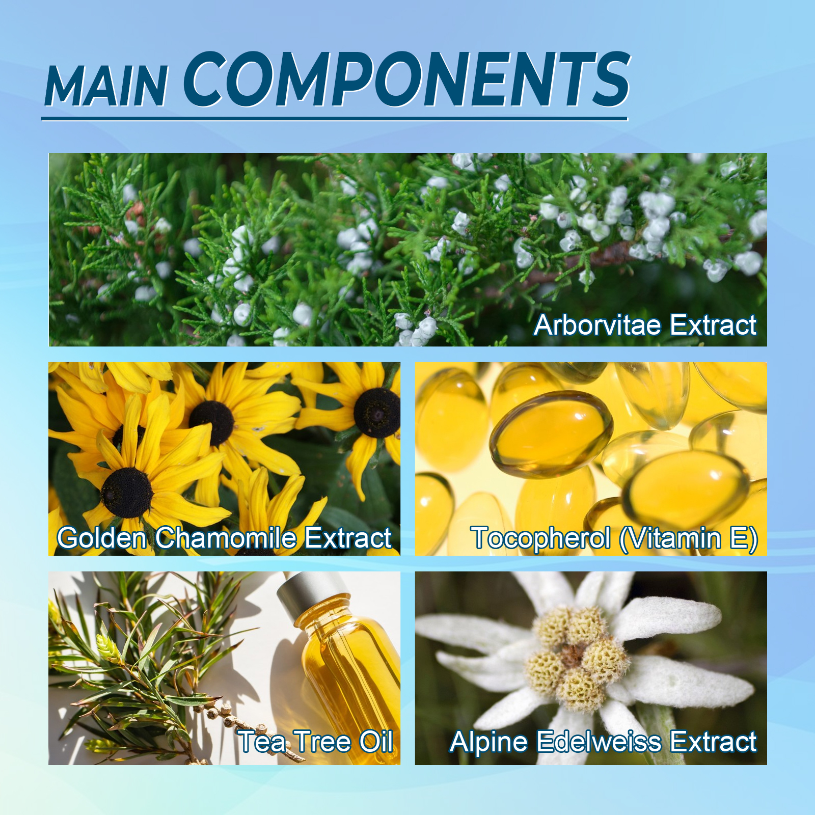 | 成分 | 侧柏提取物、金黄洋甘菊提取物、生育酚(维生素E) |