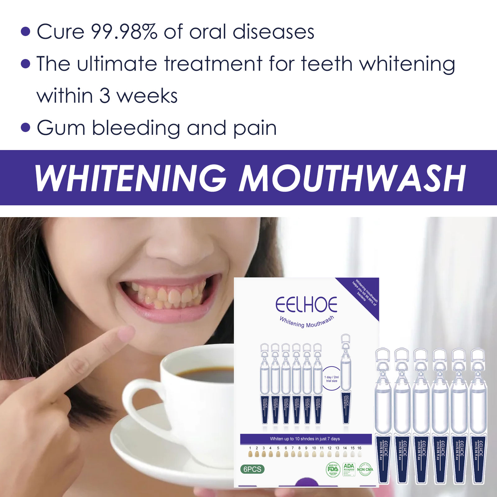 Eelhoe Whitening Mouthwash Gum Care Fresh Breath Mouthwash Deep Clean Whitening Teeth