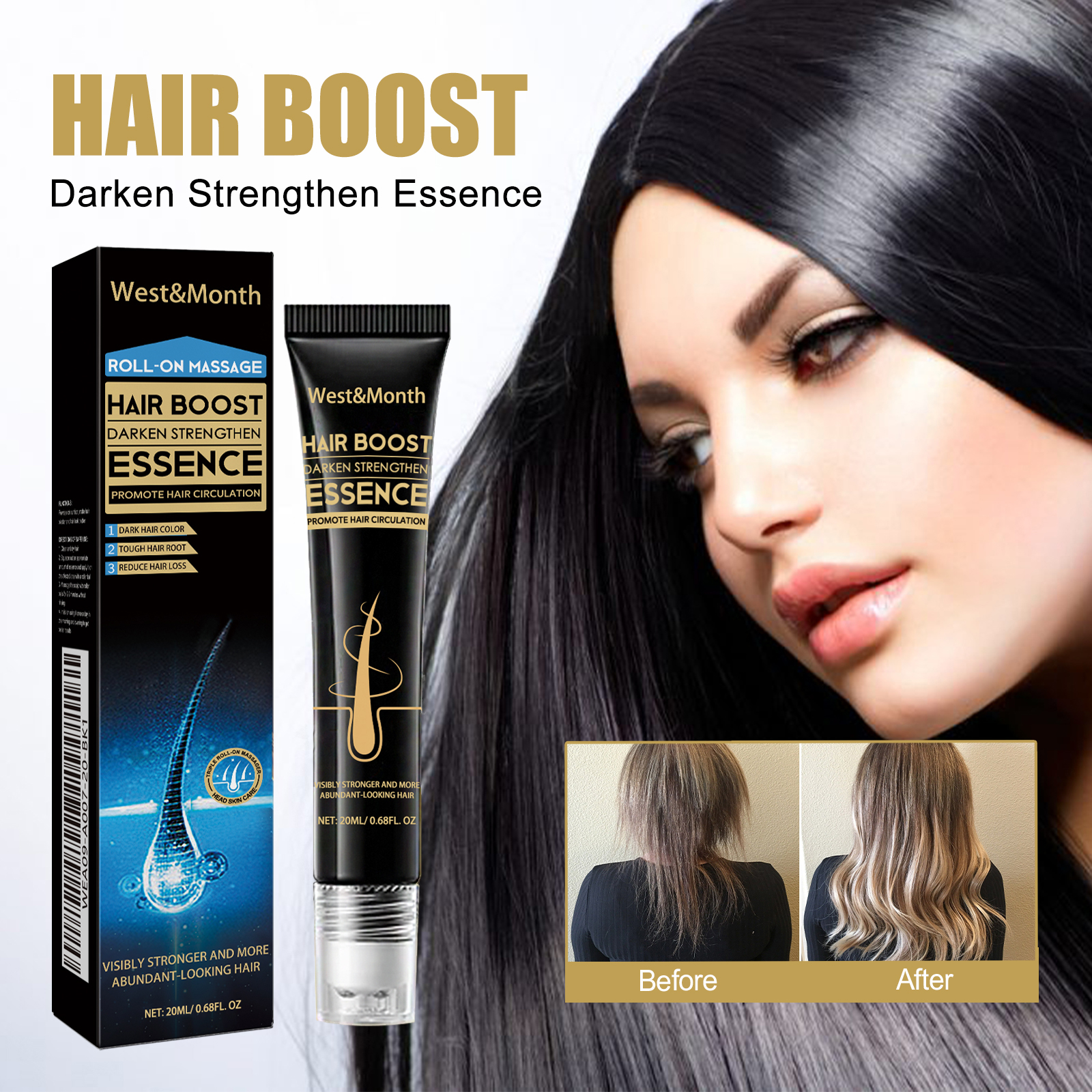 West&Month Hair Boost Darken Strengthen Essence, Scalp Massage Moisturizing Hair Roots Thick Smooth Hair Care Ball