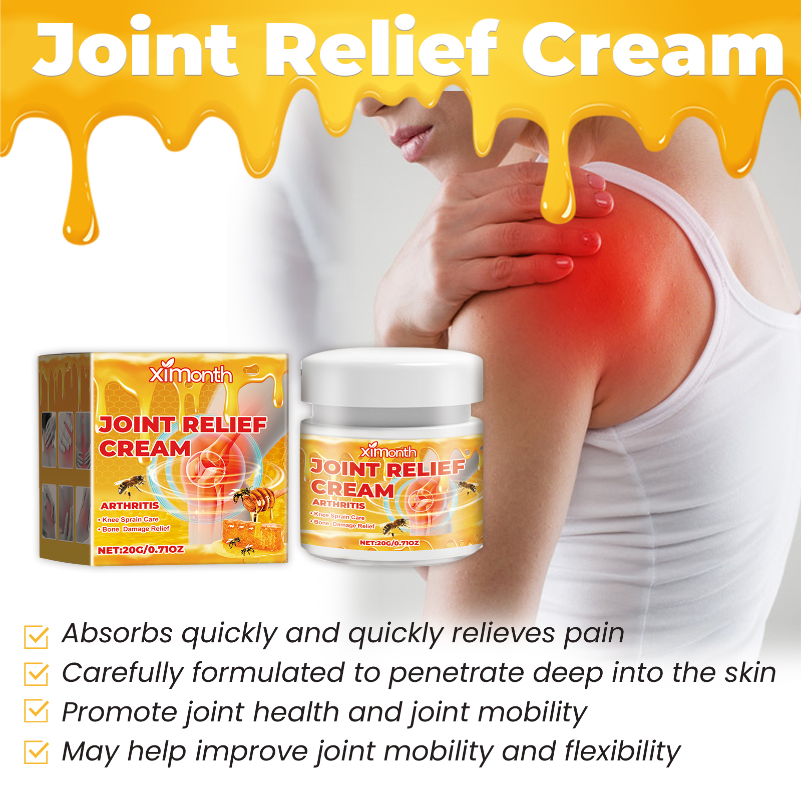 Ximonth Bee Venom Joint Care Cream, Relieves Knee Joint Pain And Discomfort By Massaging Body Joint Care Cream