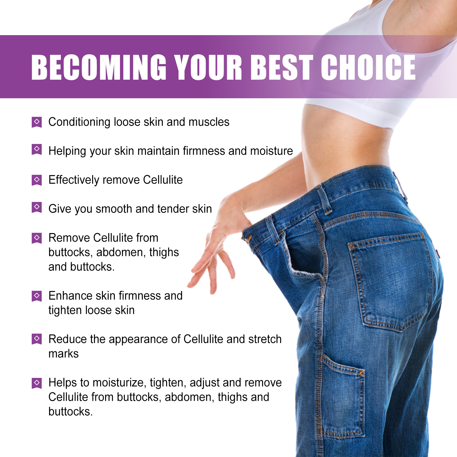我们的身体紧致凝胶含有烟酰胺、乳木果油、水解胶原蛋白。它可以增强肌肤紧致度,紧致松弛肌肤;减少脂肪团和妊娠纹的出现;有助于滋润、紧致、调节和去除臀部、腹部、大腿和臀部的脂肪。它的使用方法很简单:1. 清洁并擦干身体皮肤;2. 取适量本品均匀涂抹于皮肤上;3. 用手做圆周运动,轻轻按摩,直到皮肤吸收。身体紧致凝胶调理松弛的皮肤和肌肉;帮助你的皮肤保持紧致和滋润;有效去除脂肪团,给你光滑嫩滑的肌肤;去除臀部、腹部、大腿和臀部的脂肪团。