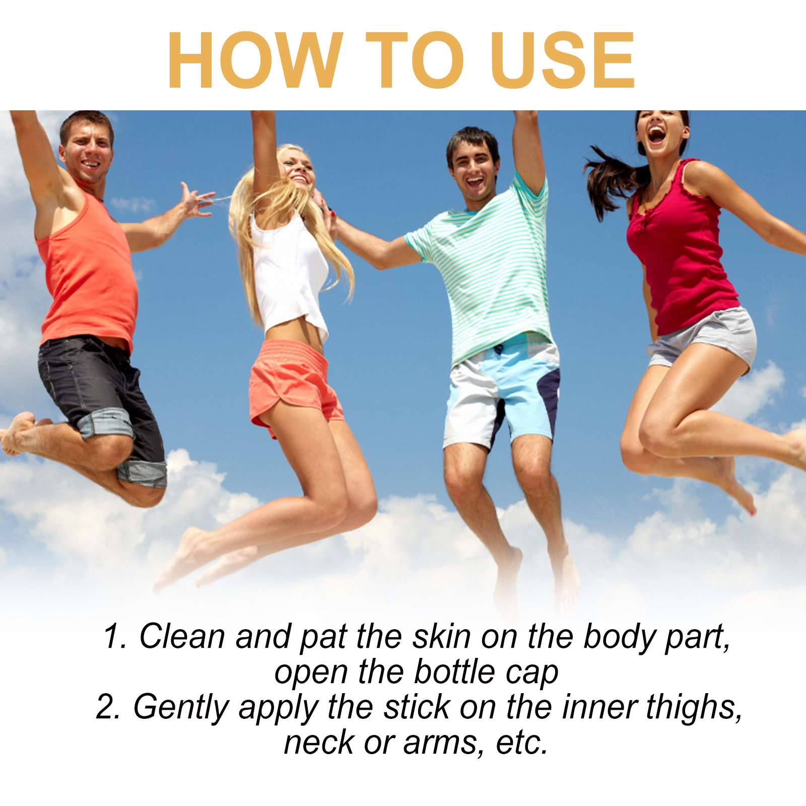 我们的身体护理棒含有蜂蜡、椰子油、滑石粉。它可以减少皮肤与皮肤之间,皮肤与衣服之间的摩擦,从而减少磨损,提供保湿效果,使皮肤更柔软。它的使用方法很简单:清洁并轻拍身体部位的皮肤,打开瓶盖,轻轻涂抹在大腿内侧、颈部或手臂等部位。减少皮肤与皮肤之间的摩擦,提供保湿效果,使您的活动更舒适。