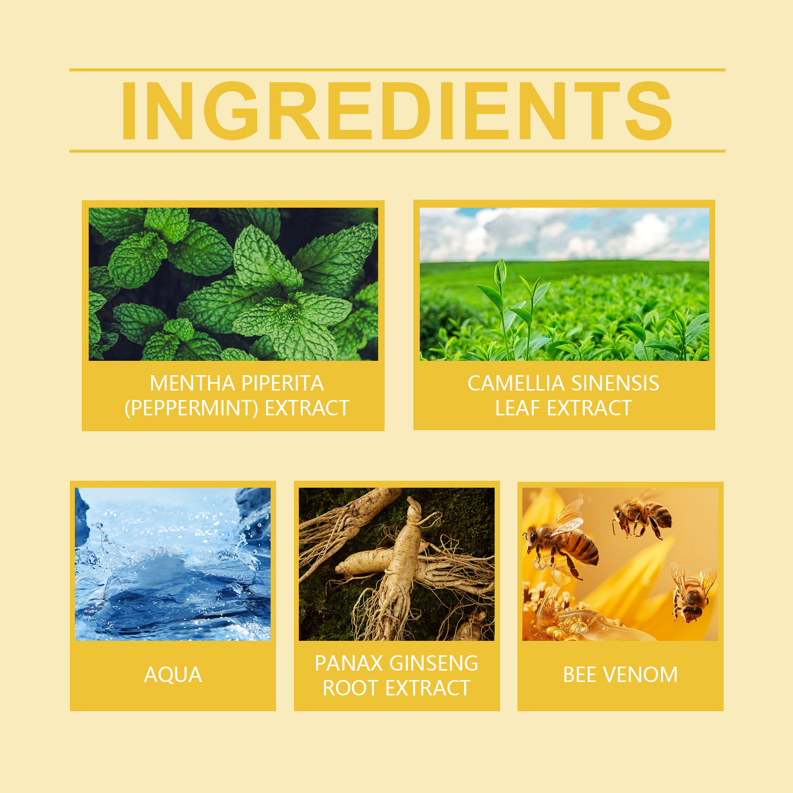 | 成分 | 蜂毒、绿茶提取物、人参提取物 |