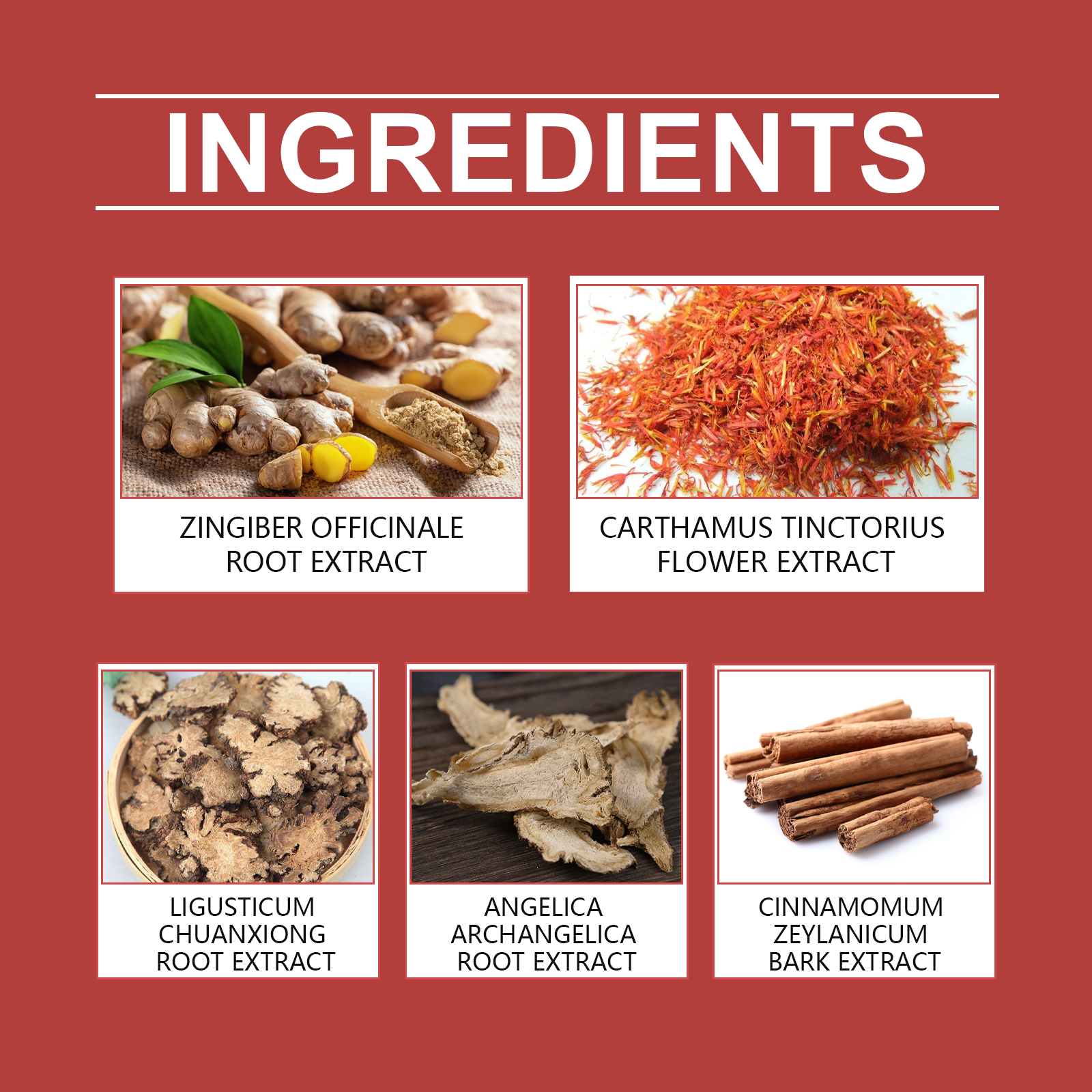 | 成分 | 生姜根提取物、红花花提取物、川芎根提取物 |