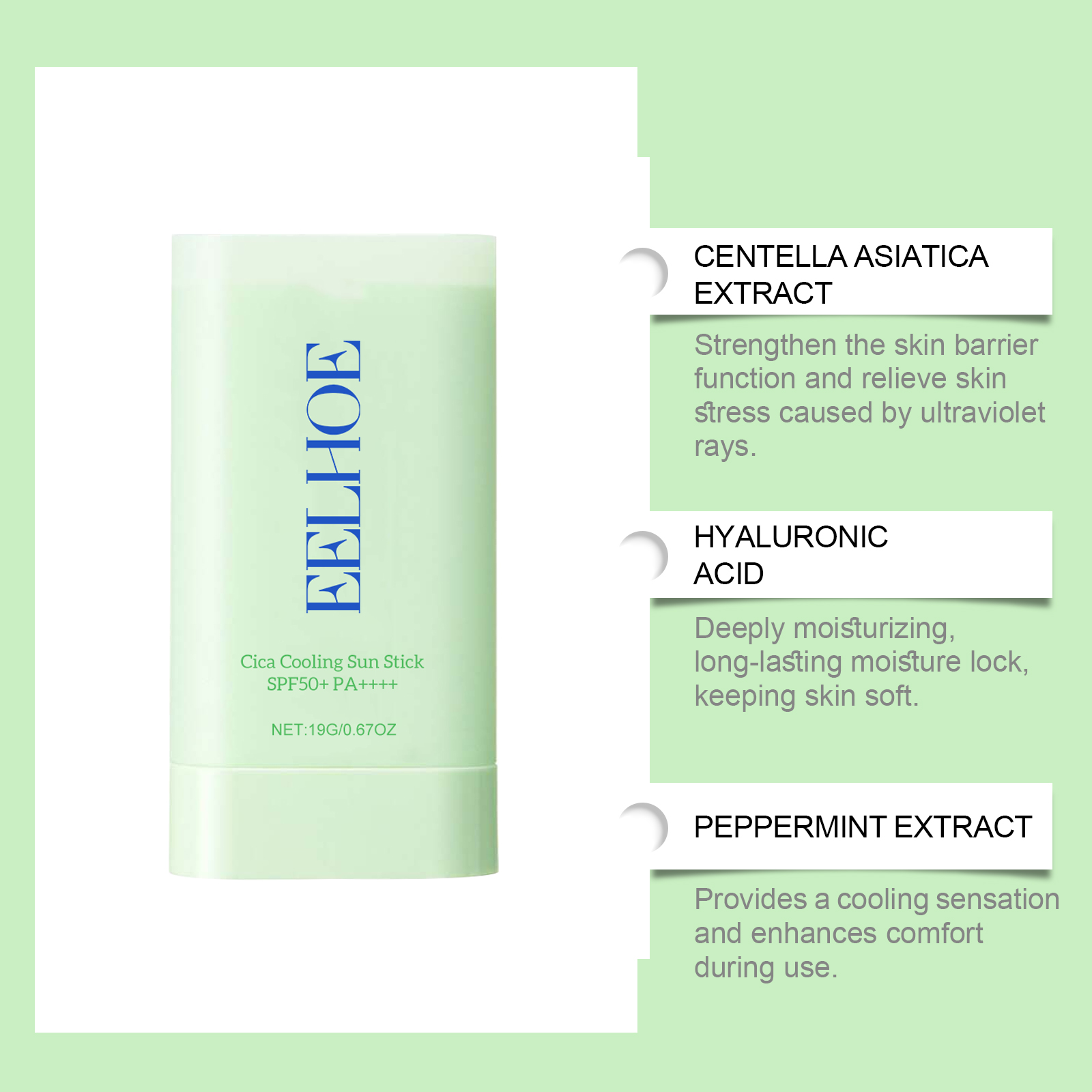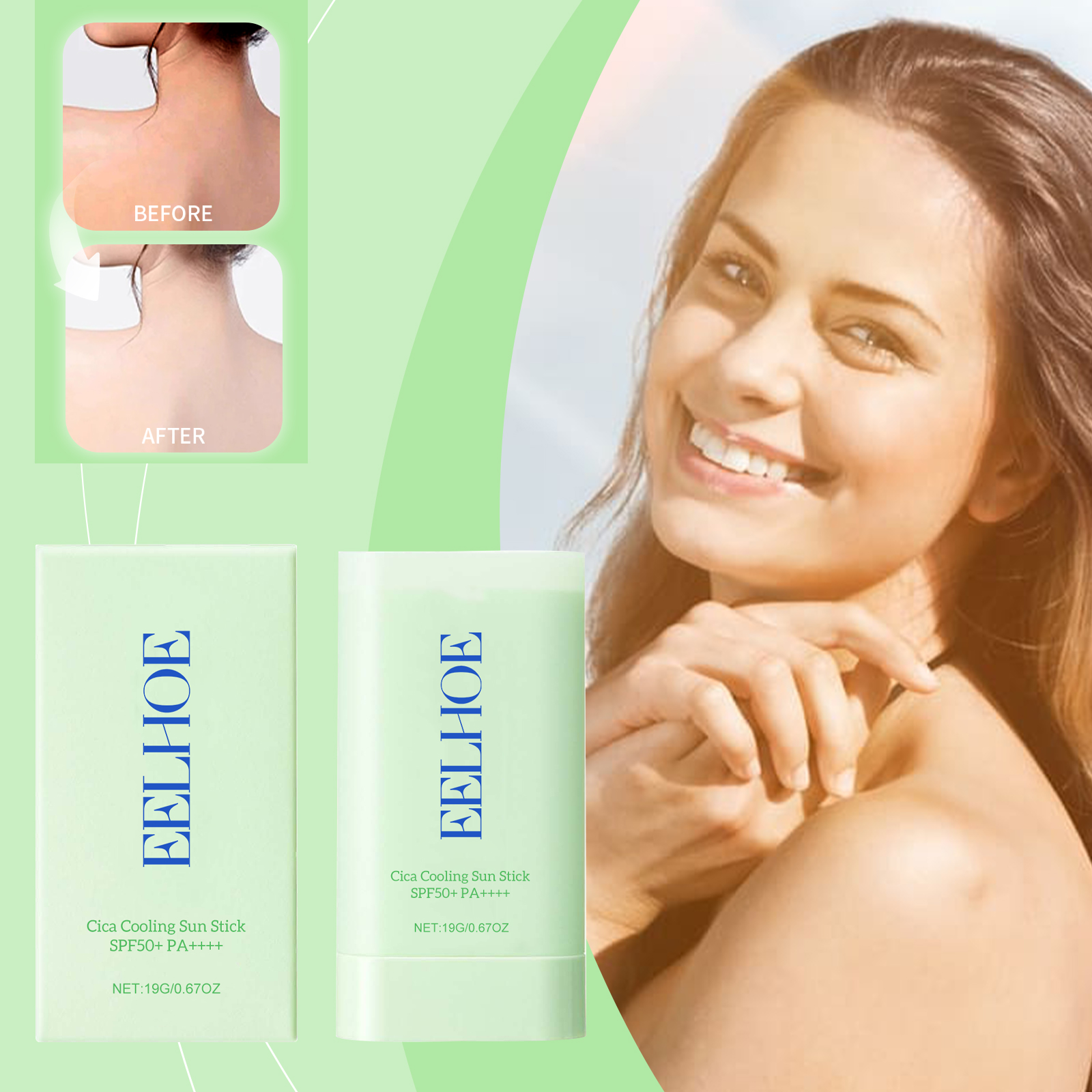 EELHOE Cica Cooling Sun Stick, Refreshing Isolation Solid Protective Cream Against UV Sunburn Outdoors