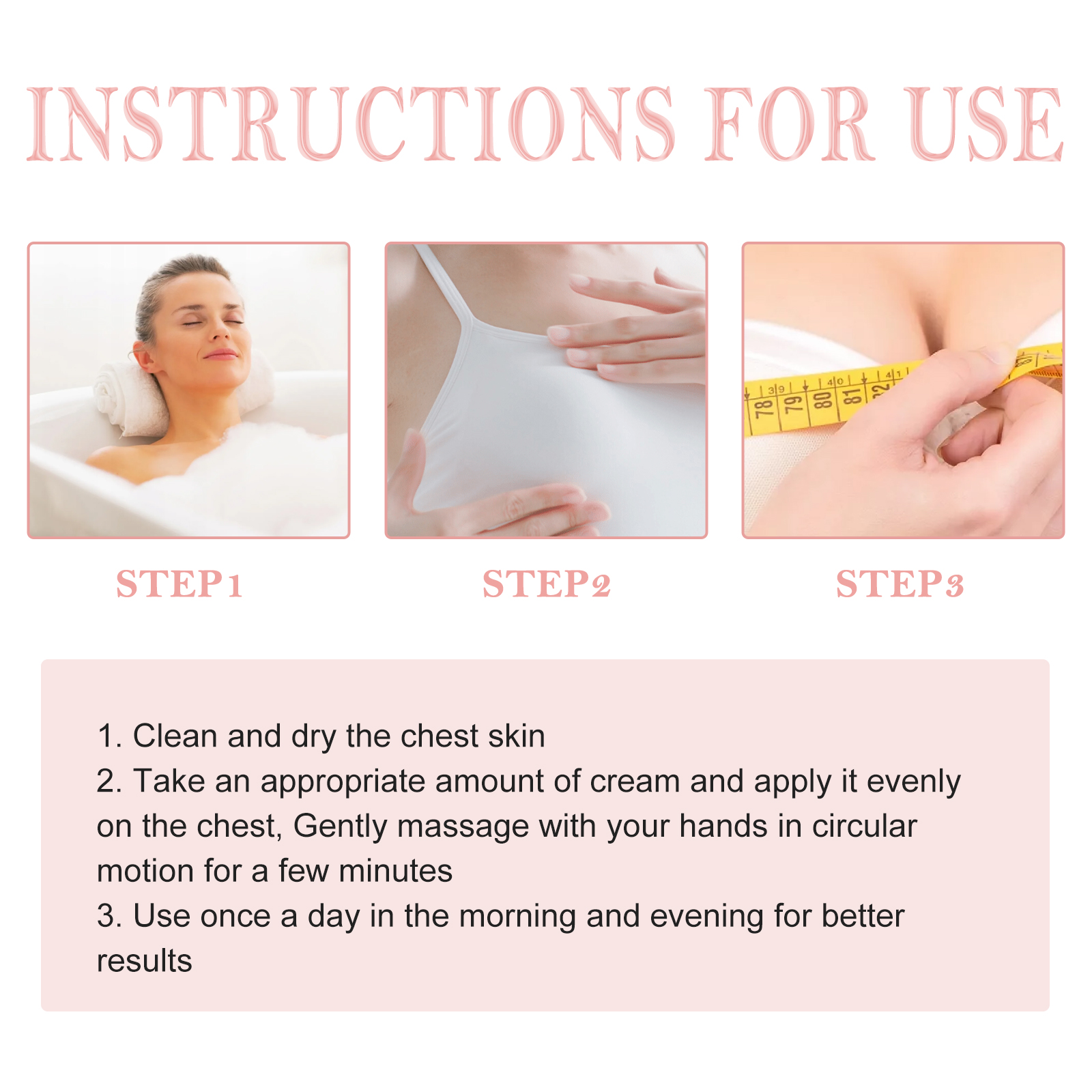 我们的乳房面膜含有甘油、葛根提取物、维生素E。它可以滋养胸部肌肤,调整胸部大小,使胸部两侧对称曲线,使乳房变得紧致饱满,完美无瑕。它的使用方法很简单:清洁并擦干胸部皮肤,取适量本品均匀涂抹在胸部,用手轻轻打圈按摩几分钟即可。每天早晚各使用一次,效果更佳。提升和紧致乳房,防止下垂,从而使乳房坚挺饱满。