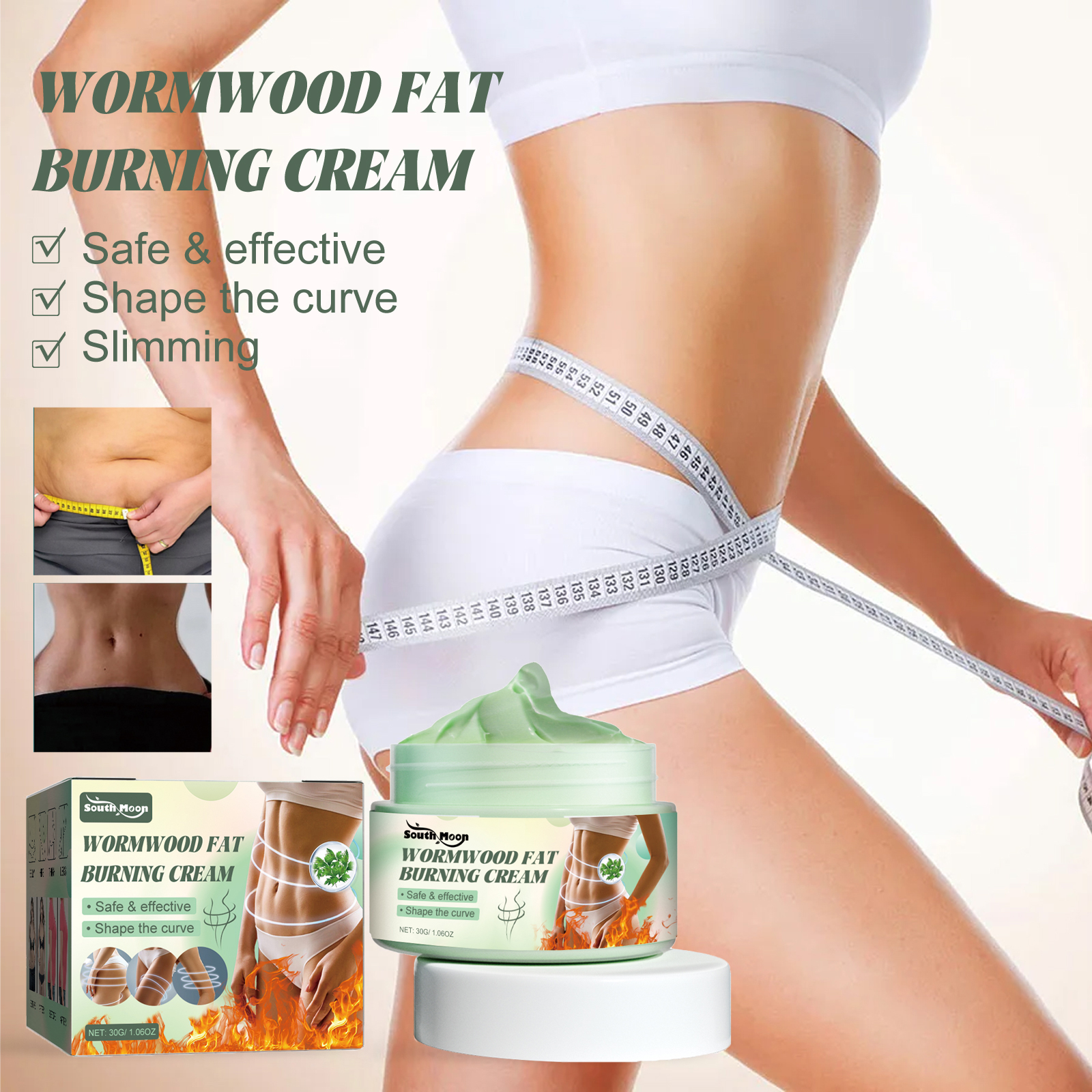South Moon Wormwood Fat Burning Cream, Massage The Body Skin Belly In Moist Lazy Body Massage Cream