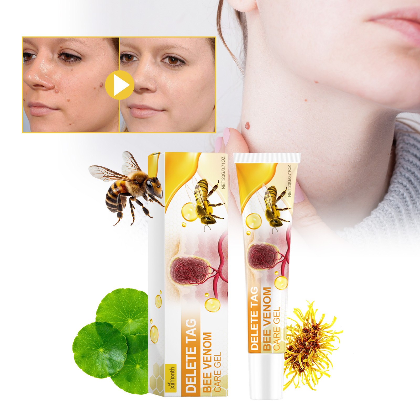 | 成分 | 蜂毒、茶树油、积雪草提取物 |
