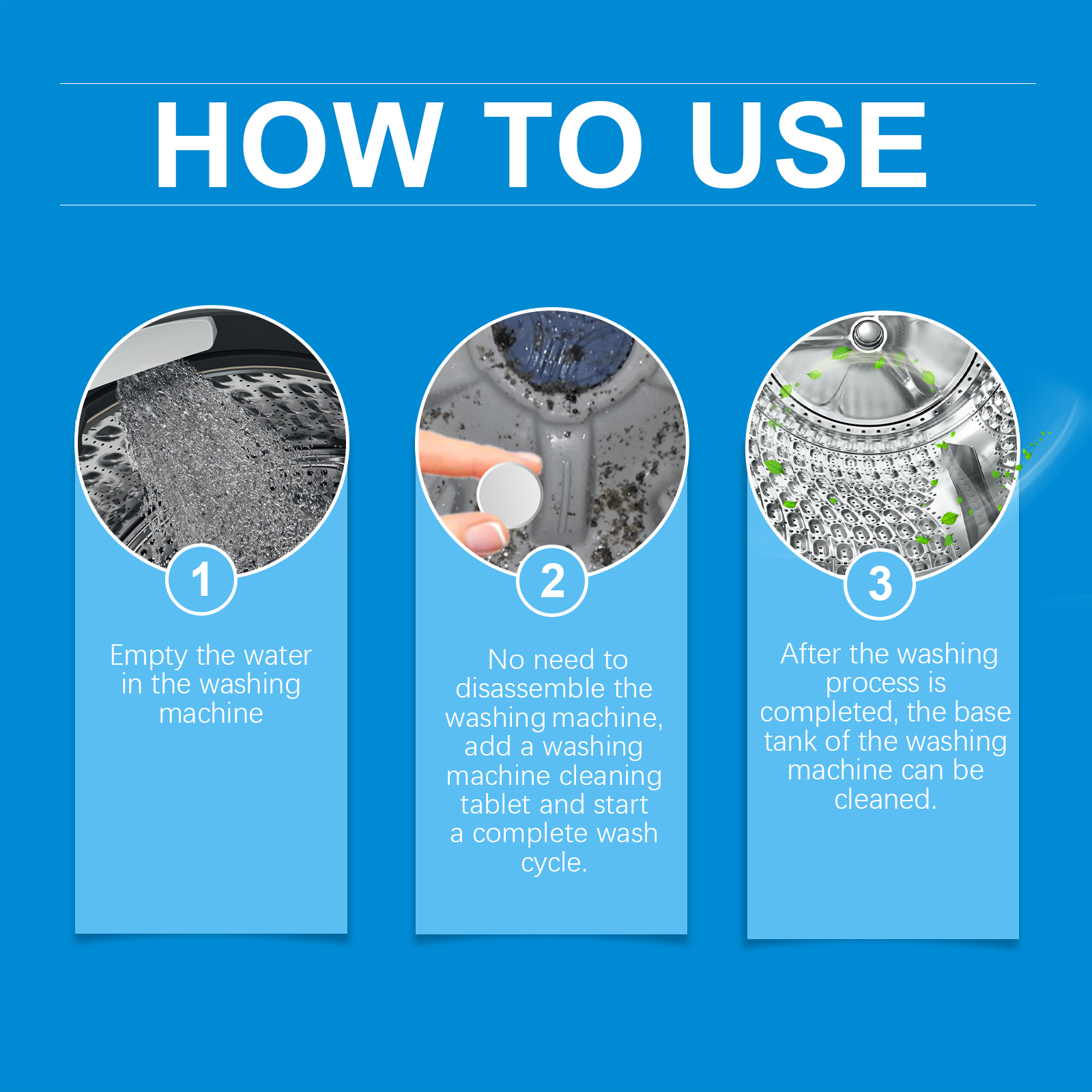 我们的洗衣机去污泡腾片含有碳酸氢钠、柠檬酸。它可以快速溶解,不留下残留物,保护洗衣机。它的使用方法很简单:把洗衣机里的水倒空,无需拆卸洗衣机,添加洗衣机清洁片,开始一个完整的洗涤周期。洗涤过程完成后,可对洗衣机的底槽进行清洗。并且适用于日常家庭使用,也可以应对严重的污渍挑战。