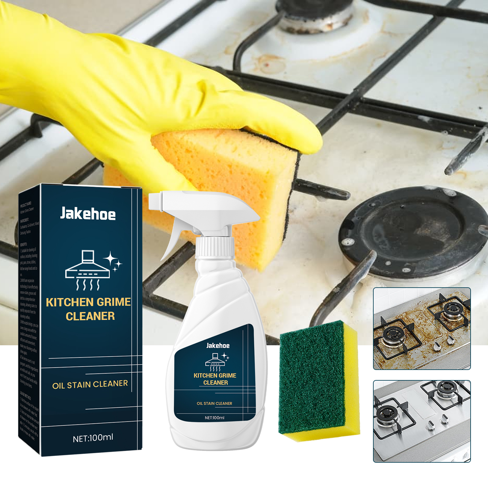 Jakehoe Kitchen Grime Cleaner, Kitchen Stove Hood To Remove Oil And Dirt To Remove Stains Multi-Purpose Cleaner