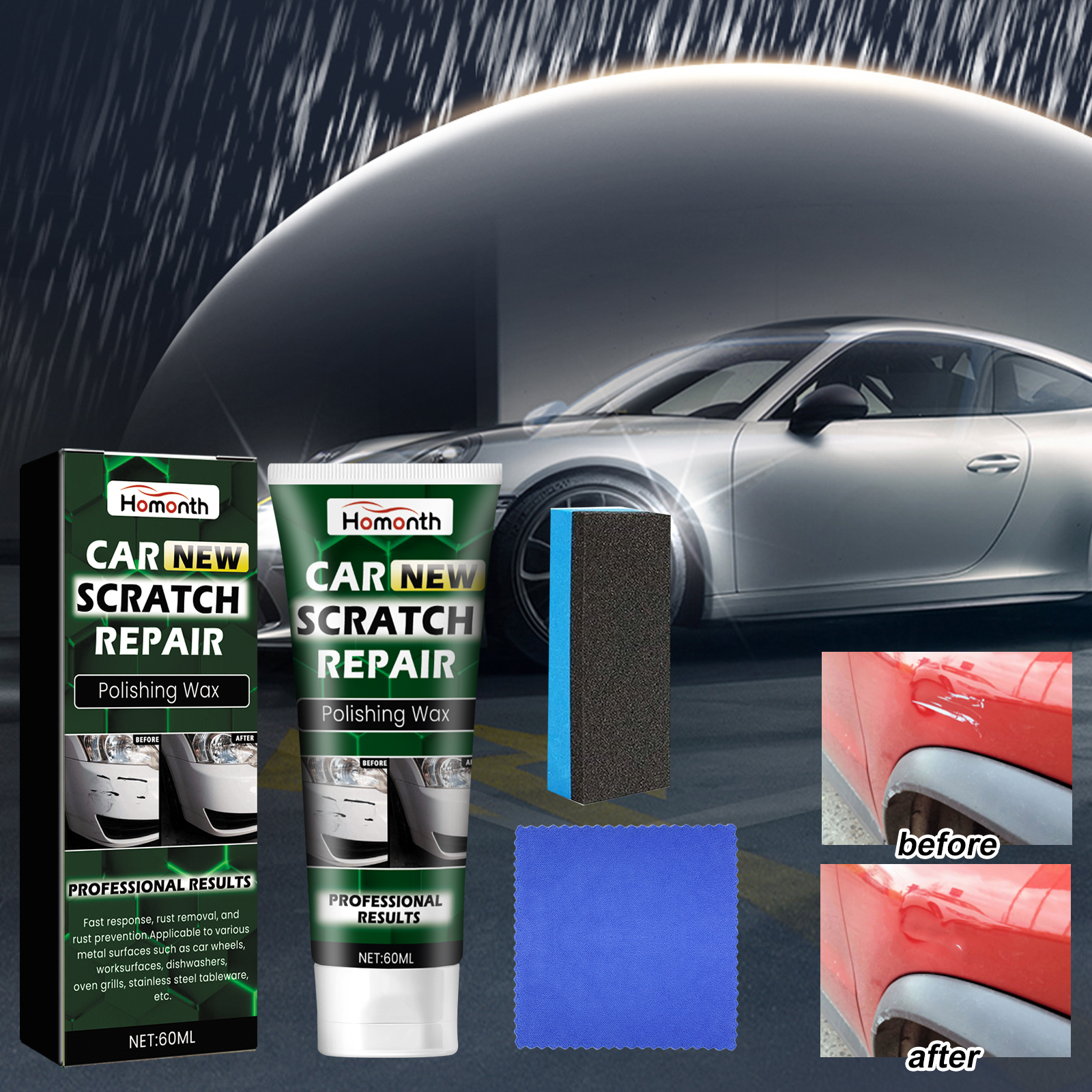 Homonth Car New Scratch Repair, Car Maintenance Reconditioning Clean Finish Scratch Repair Scratch Care Cream
