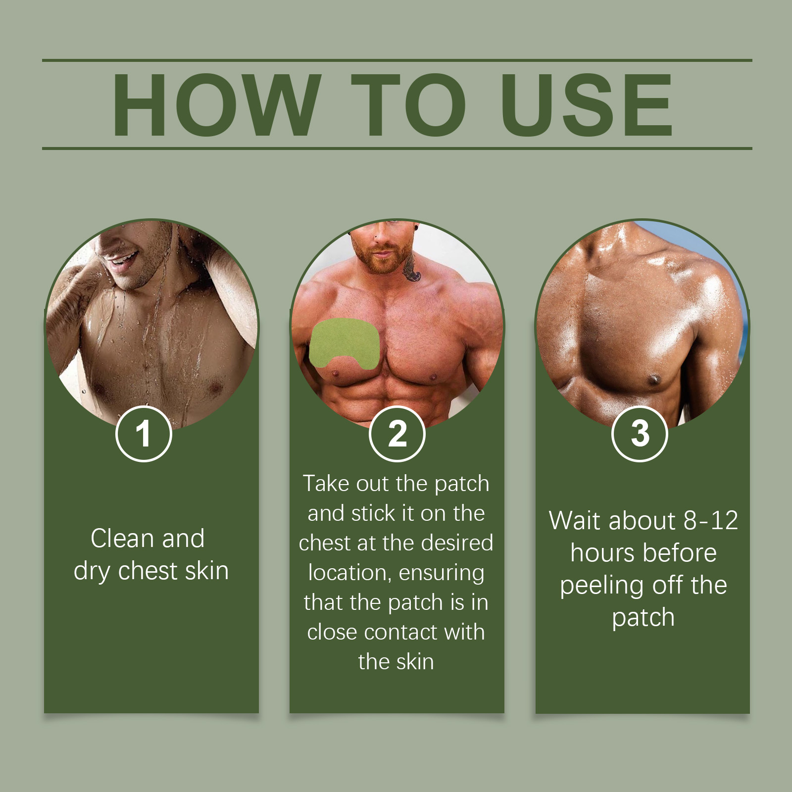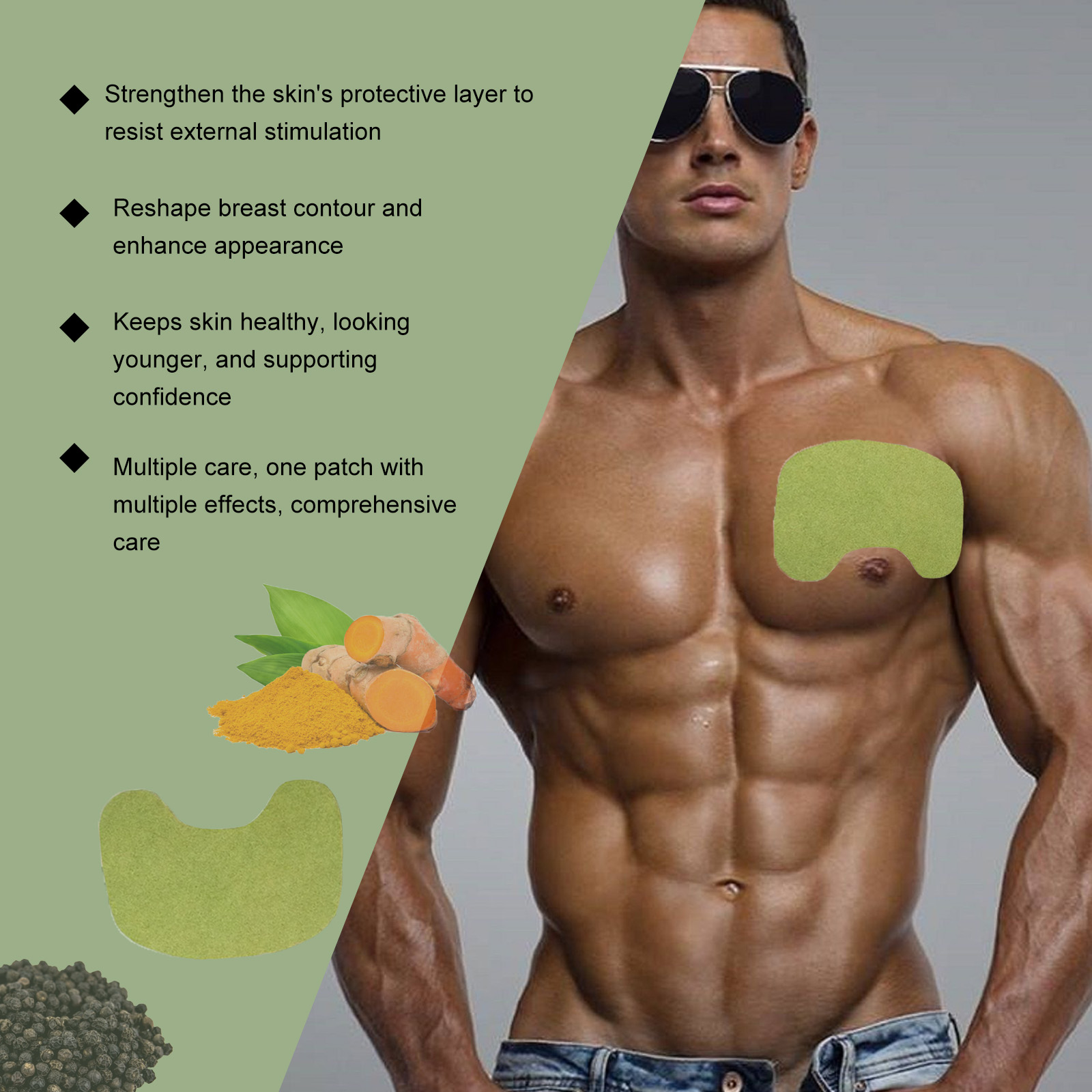 我们的男性胸部护理贴含有姜黄根提取物、胡椒提取物、拉拉藤提取物。它可以有助于减少胸部脂肪,增强胸部苗条效果;强化皮肤保护层,抵抗外界刺激;重塑乳房轮廓,提升外观;保持皮肤健康,看起来更年轻,支持自信;多重护理,一贴多效,全面护理。它的使用方法很简单:1.清洁和干燥胸部皮肤;2.取出贴片,贴在胸部所需位置,确保贴片与皮肤紧密接触;3.等待8-12个小时后再剥下贴片。男性胸部护理贴精选的植物配方能深入皮肤,提供持久的乳房护理。紧致皮肤,改善松弛的外观,帮助你的乳房保持理想的形状。