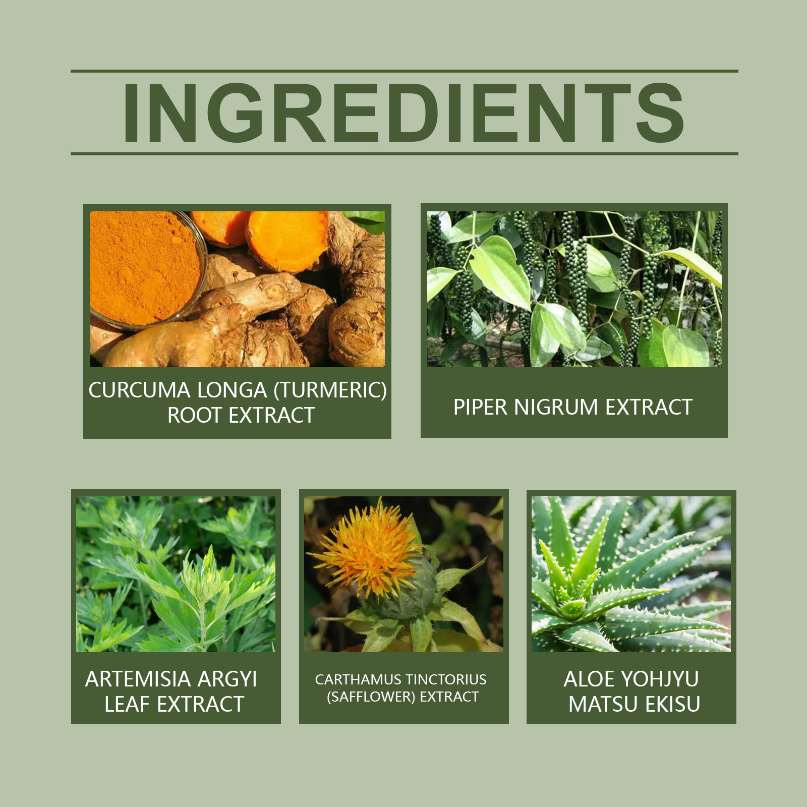 | 成分 | 姜黄根提取物、胡椒提取物、拉拉藤提取物 |