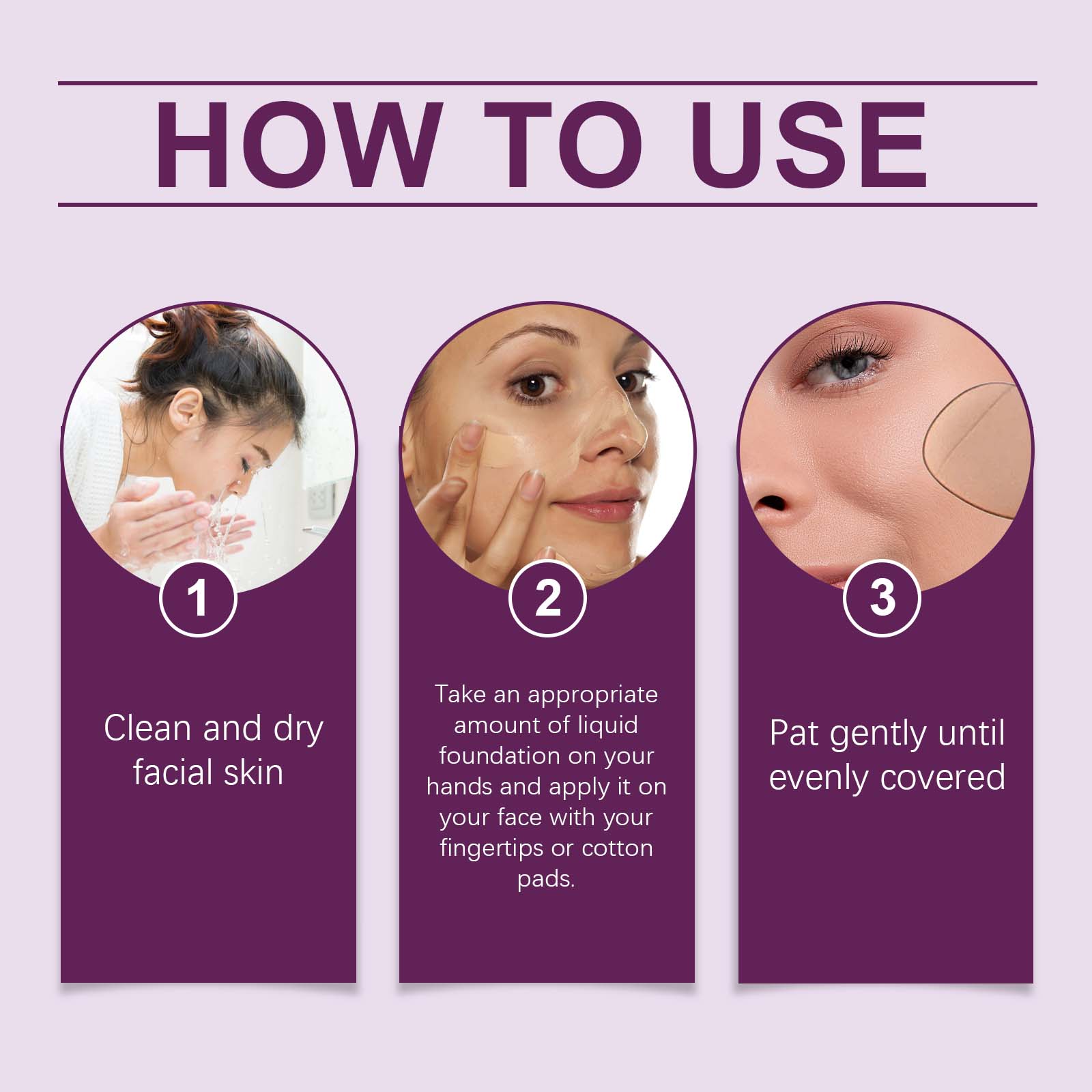 我们的遮瑕粉底液含有烟酰胺、维生素E。它可以持久贴合,防汗防油,促进我们的健康。它的使用方法很简单:清洁干燥面部皮肤,取适量粉底液于手上,用指尖或化妆棉涂抹于面部。轻轻拍打直至均匀覆盖即可。并且可以提供均匀的肤色和遮盖缺陷。