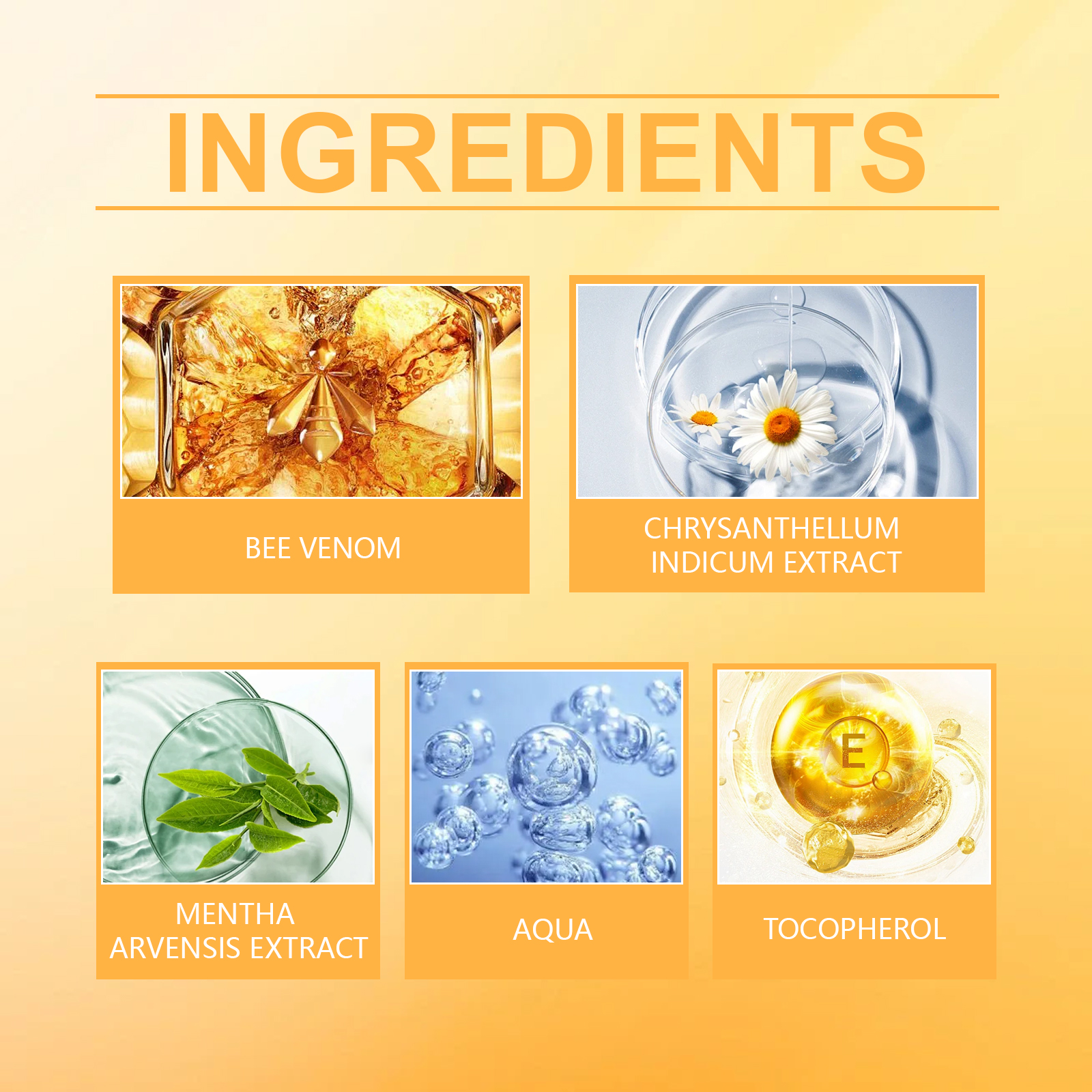 | 成分 | 蜂毒、洋甘菊提取物、薄荷提取物 |