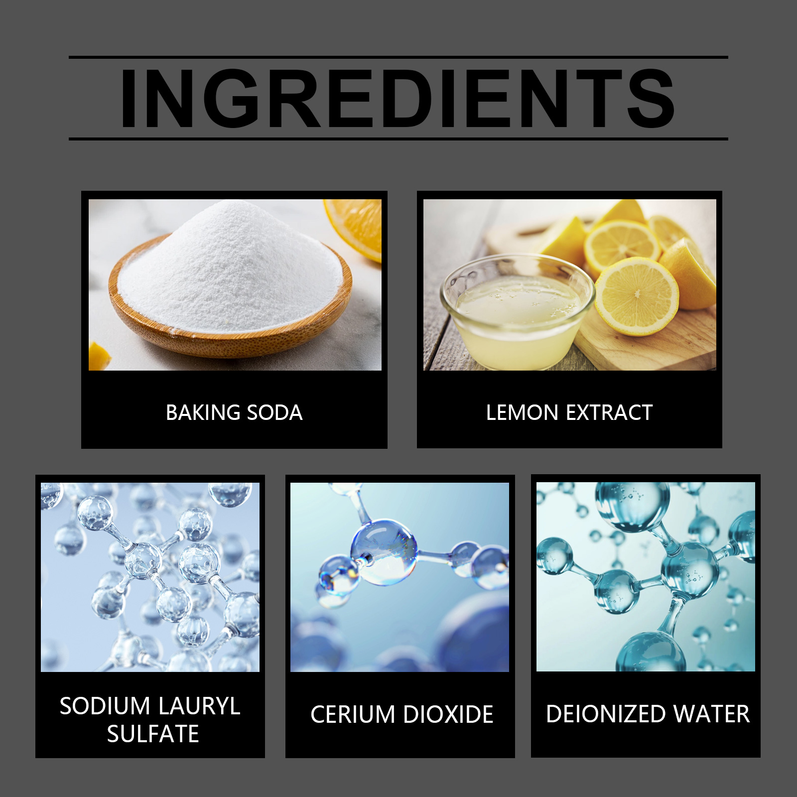 | 成分 | 十二烷基硫酸钠、小苏打、柠檬提取物 |