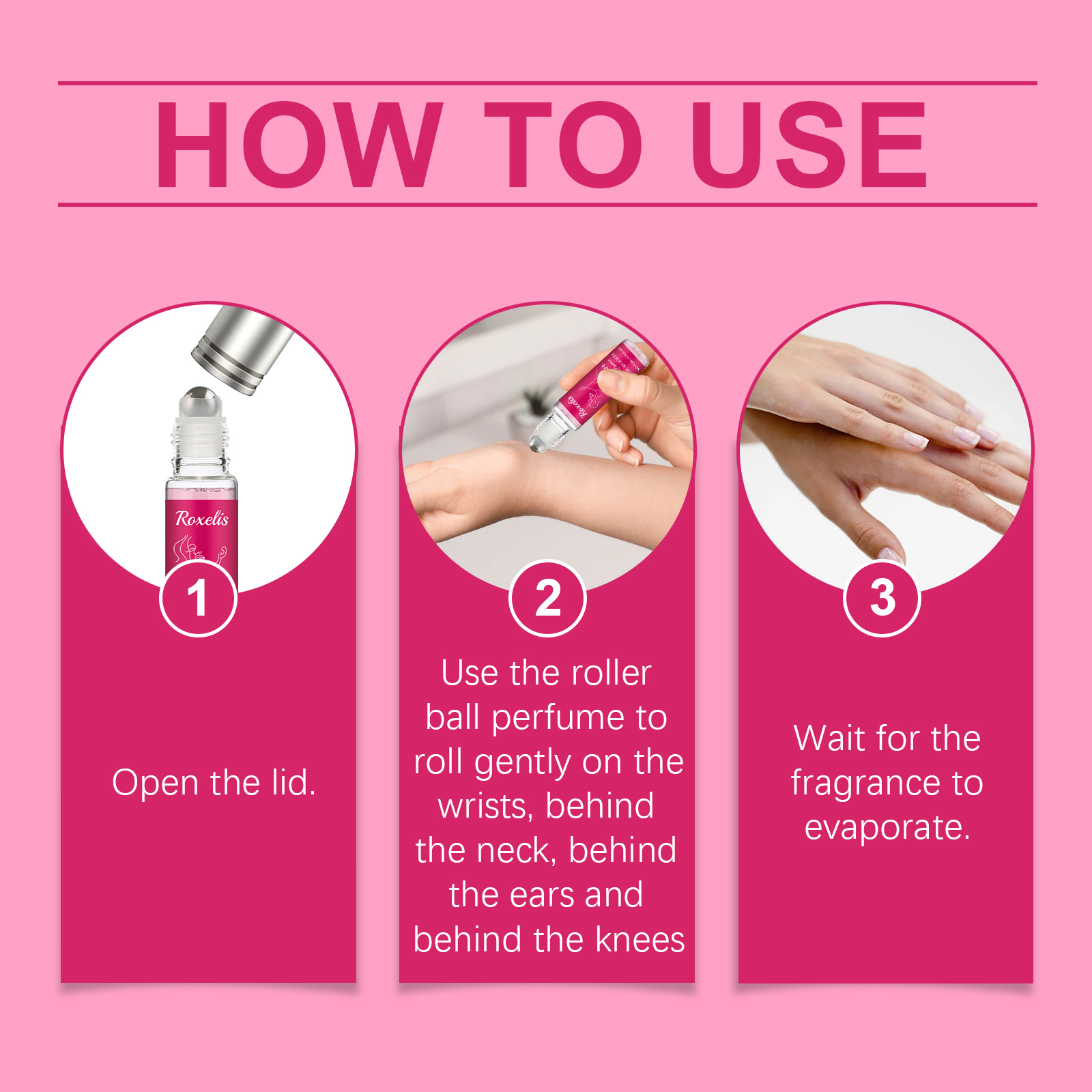 我们的费洛蒙滚珠香水(女士款玫瑰味)含有广藿香叶提取物、玫瑰花油、葡萄柚油。它可以在无形中增强人际吸引力,瞬间点亮您的个人魅力,成为全场焦点。它的使用方法很简单:打开盖子,用滚球香水轻轻地滚在手腕、脖子后面、耳朵后面和膝盖后面,等待香味散发。经典花香,传递柔情与浪漫,增强女性魅力,可以滋润肌肤的同时散发出天然的水果香味。