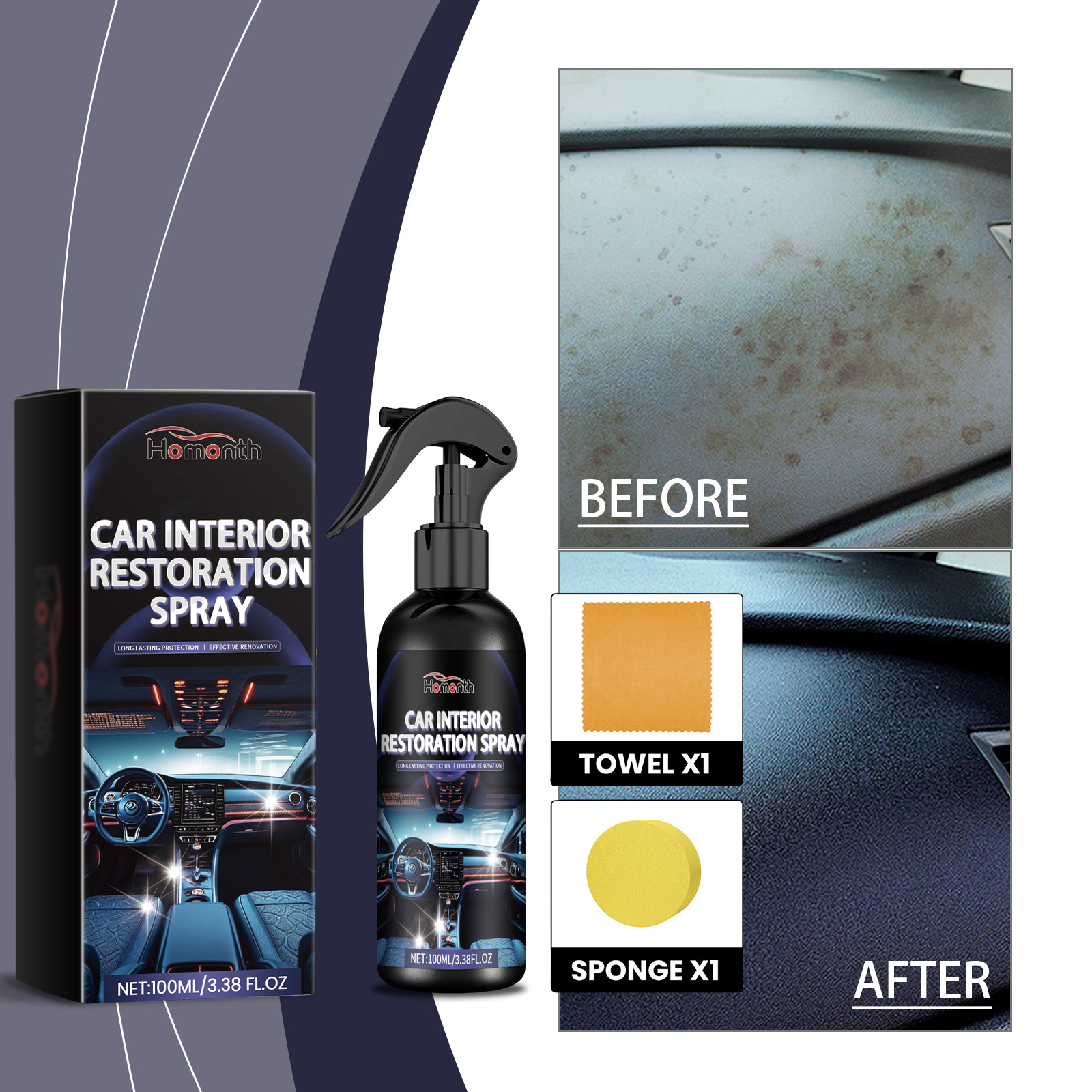 Homonth Automotive Interior Retreader Deep Cleaning, Waterproof And Anti-Fouling Reconditioning Interior Maintenance Cleaner