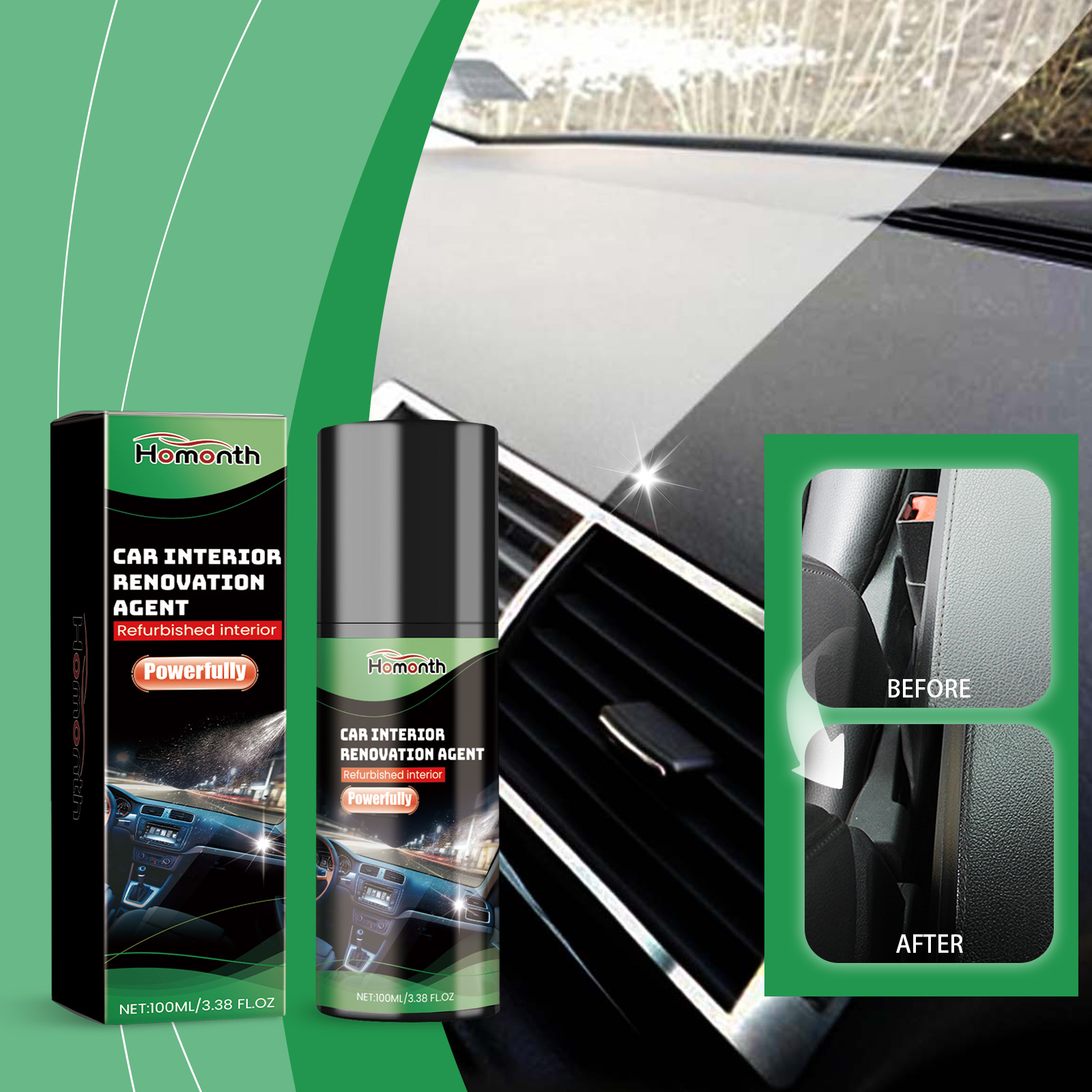 Homonth Automotive Interior Retreader, Cleaning And Decontamination Protection Material Waterproof Anti-Fouling Interior Polishing Refresh