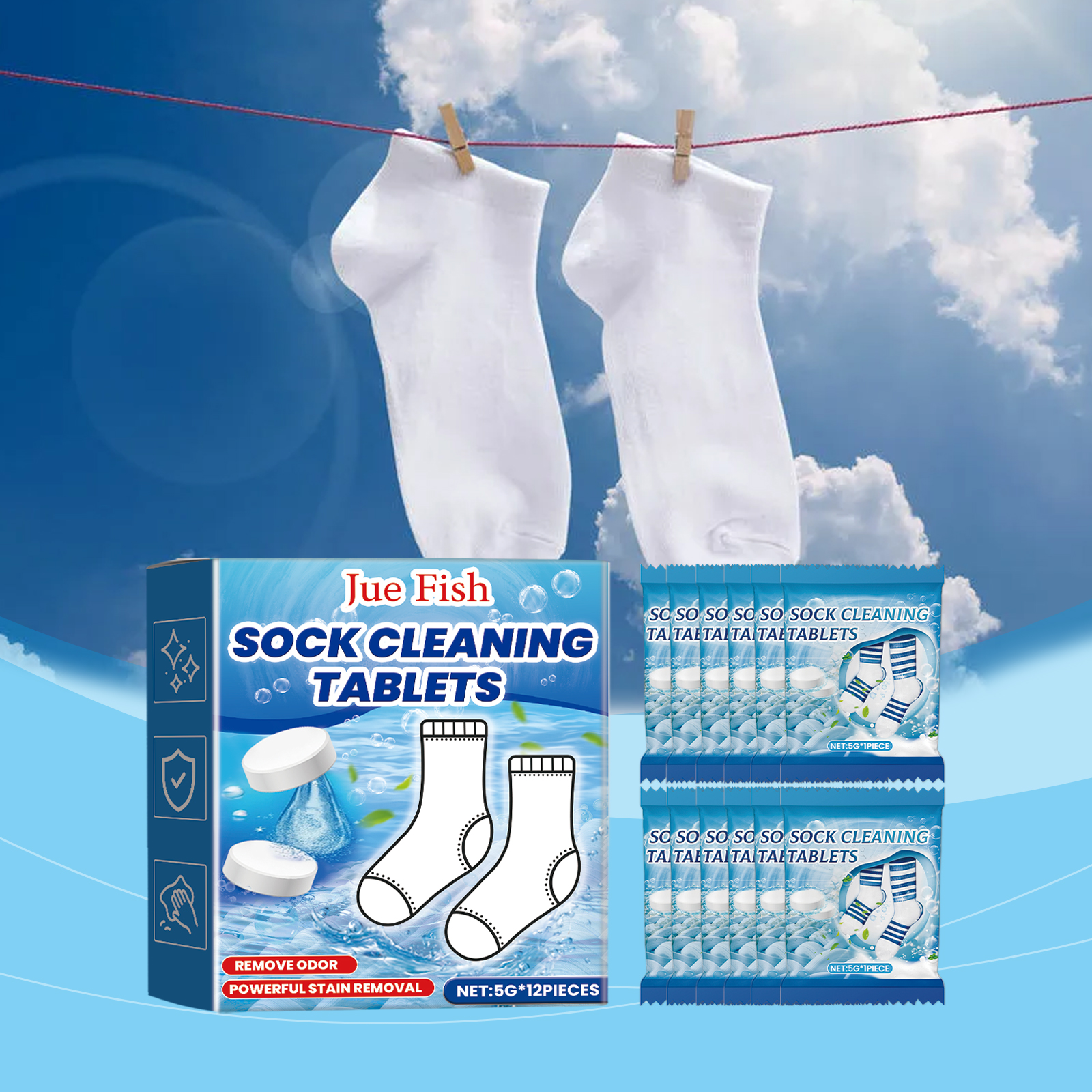 Jue-Fish Sock Cleaning Effervescent Tablet, Gently Clean Stubborn Dirt And Stains Clean And Fragrant White Sock Cleaning Tablet