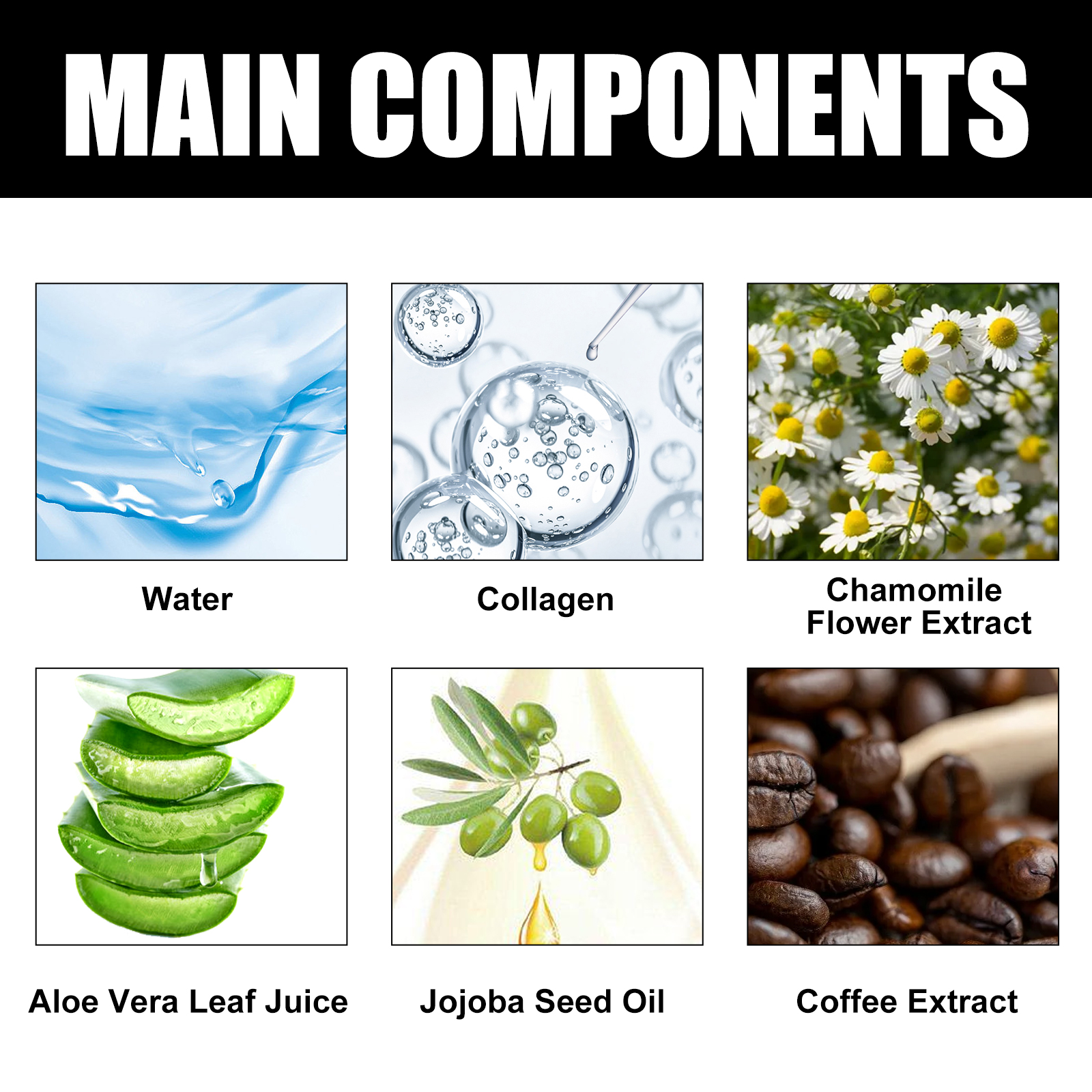 | 成分 | 咖啡提取物、洋甘菊花提取物、芦荟叶汁 |