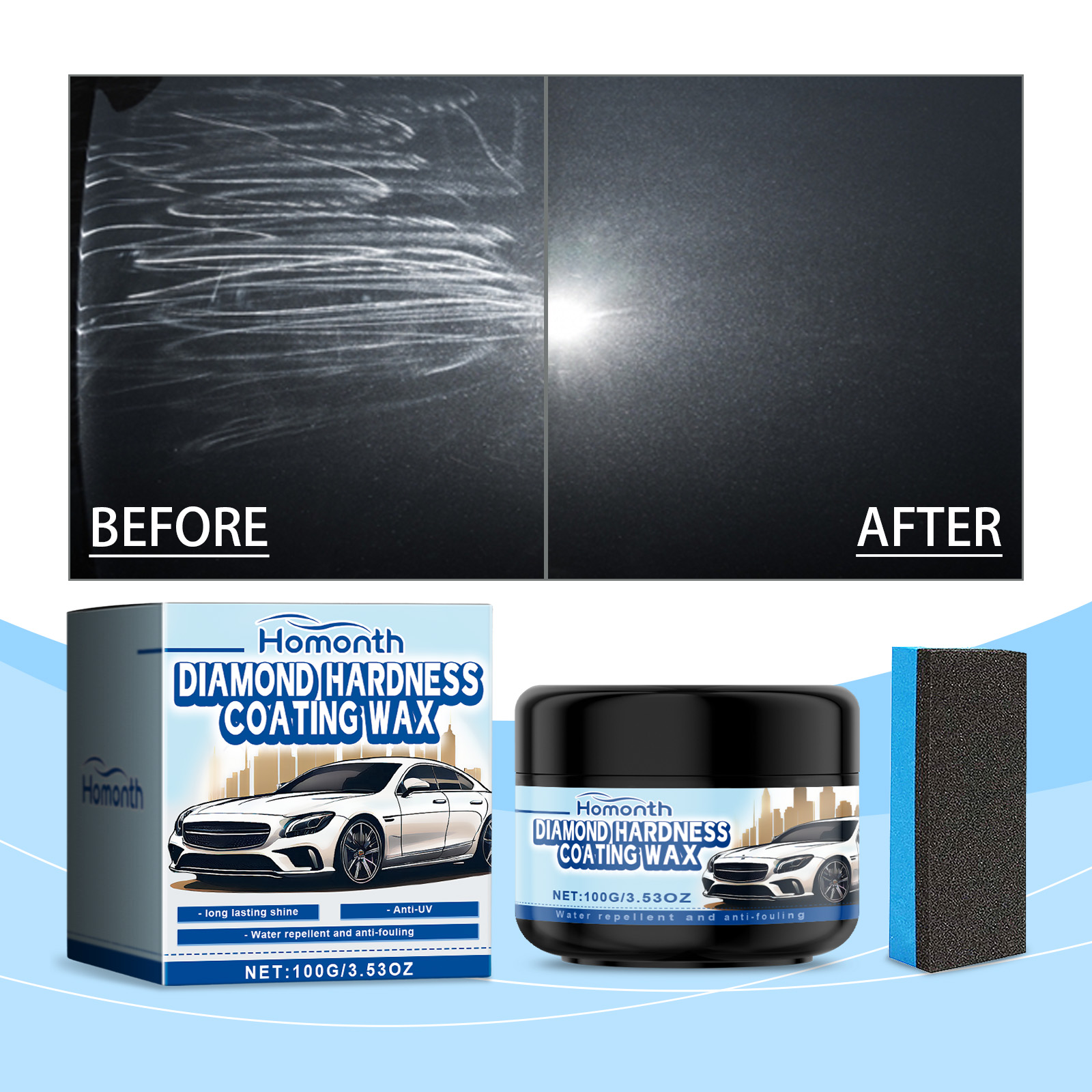 Homonth Car Polishing Wax, Clean And Decontaminate Car Paint Repair Scratches Polishing Refurbishment Maintenance Coating Wax