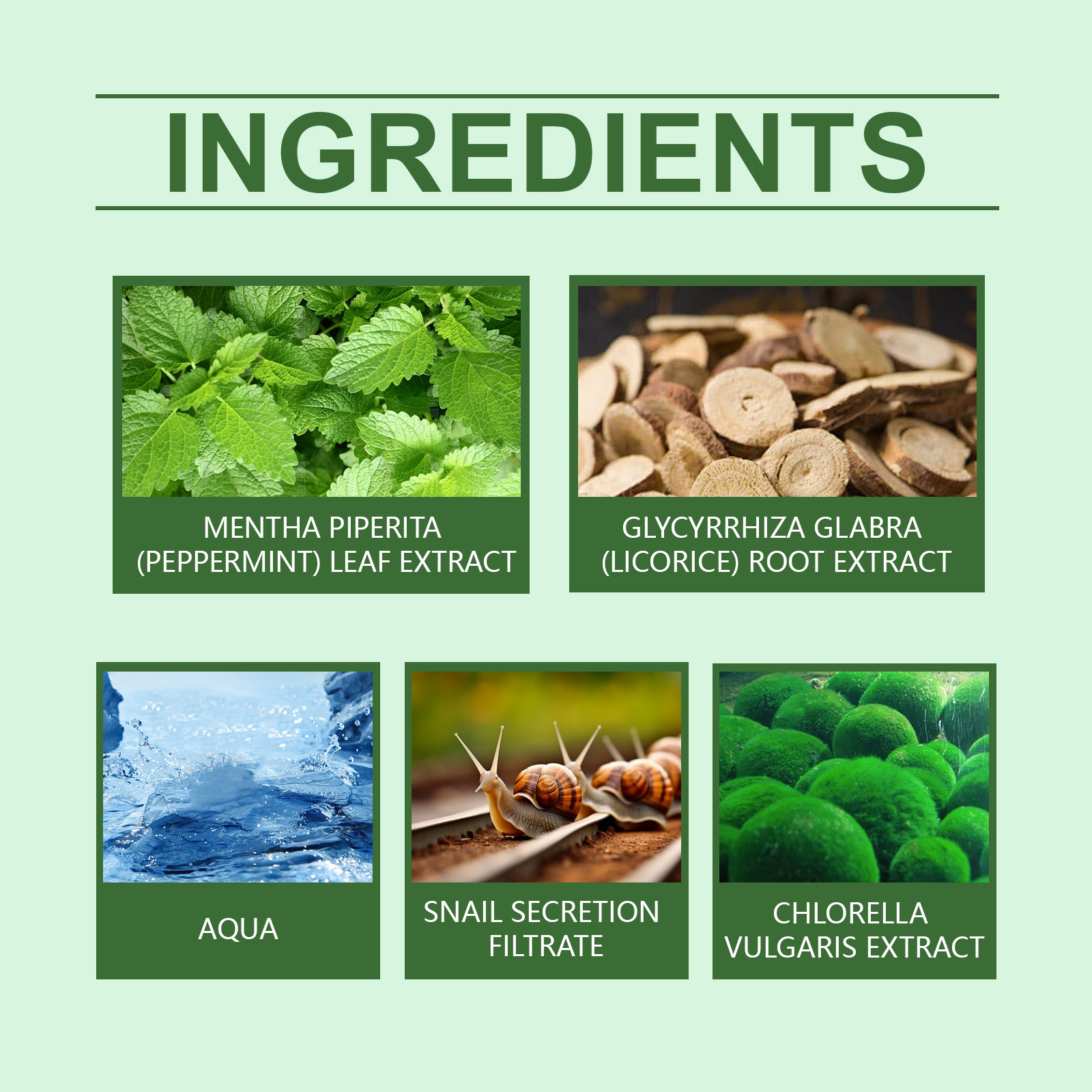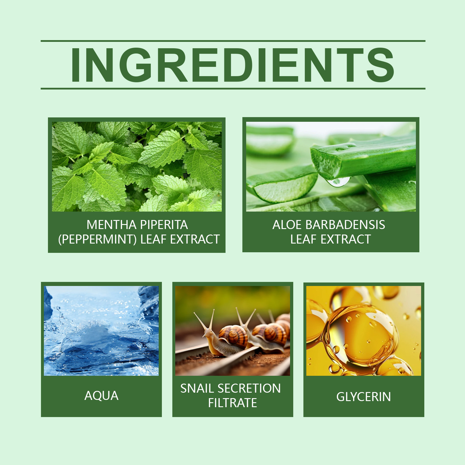 | 成分 | 蜗牛分泌滤液、薄荷叶提取物、甘草根提取 |