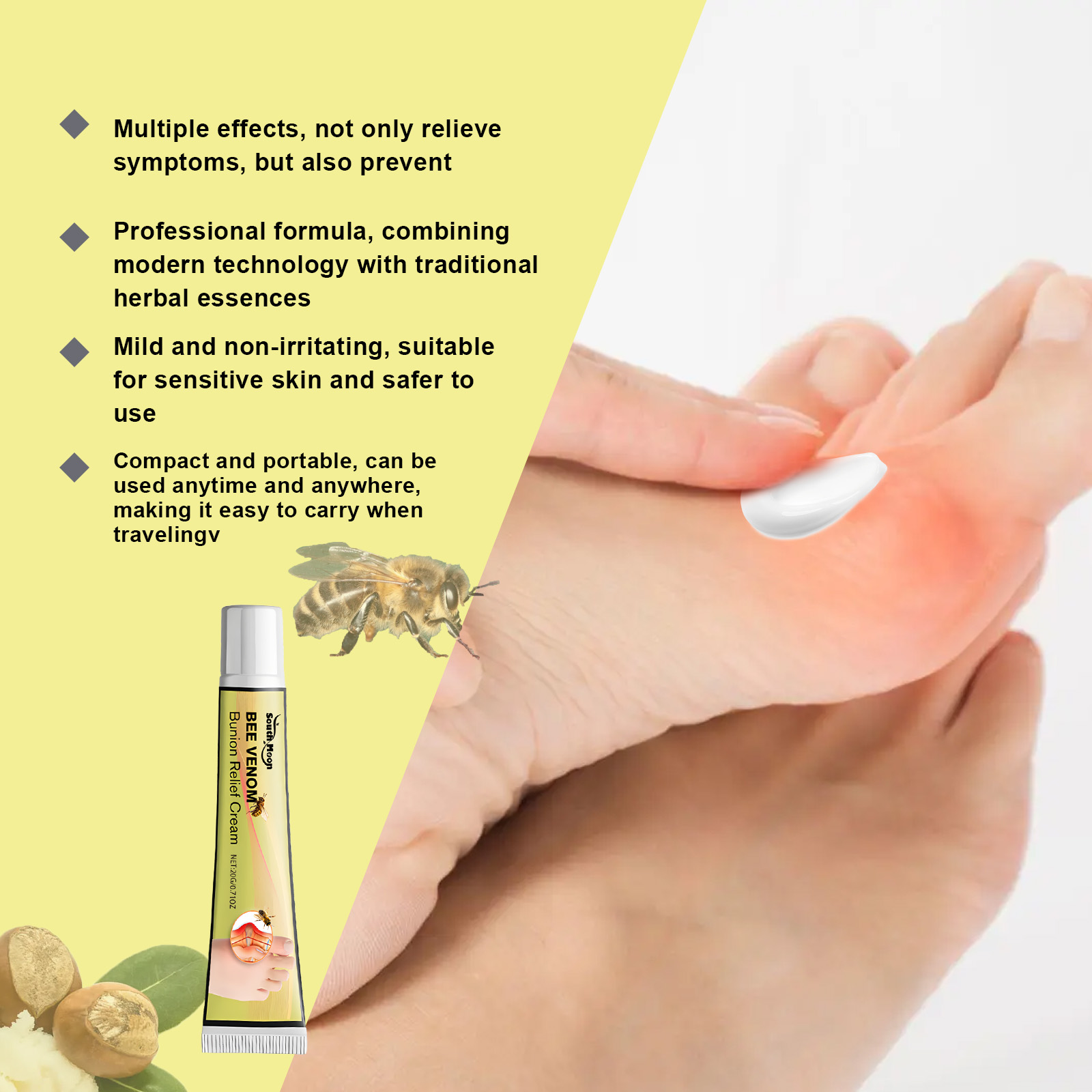 South Moon Bee Venom Bunion Relief Cream, Foot Thumb Valgus Relief Joint Pain Activating Care Cream