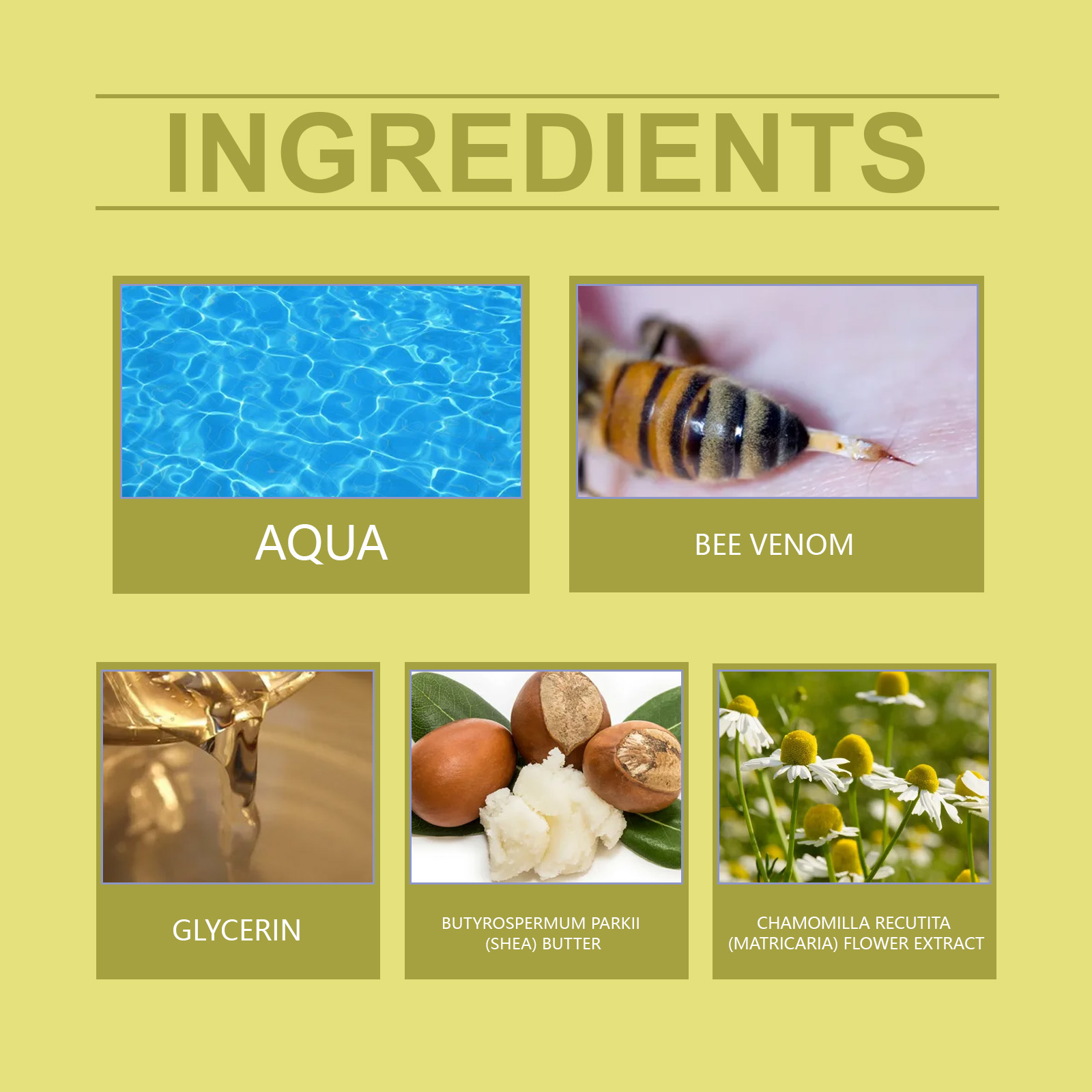 | 成分 | 蜂毒、甘油、乳木果油 |