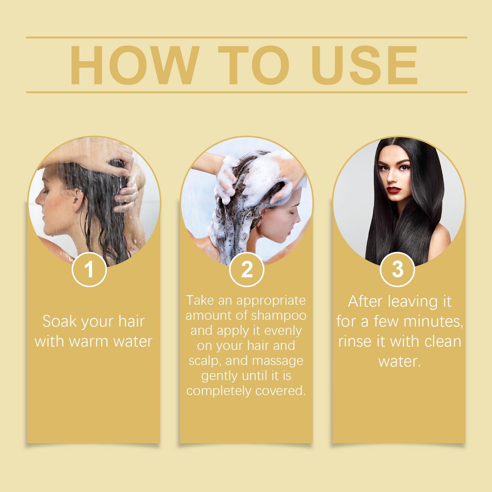 我们的乌发洗发水含有角蛋白、乳木果油。它可以改善头皮微循环,将营养直接输送到发根。它的使用方法很简单:用温水浸泡头发,取适量洗发水均匀涂抹在头发和头皮上,并轻轻按摩至完全被覆盖,静置几分钟后,用清水冲洗干净。并且可以恢复光泽,整合角蛋白,修复受损头发。