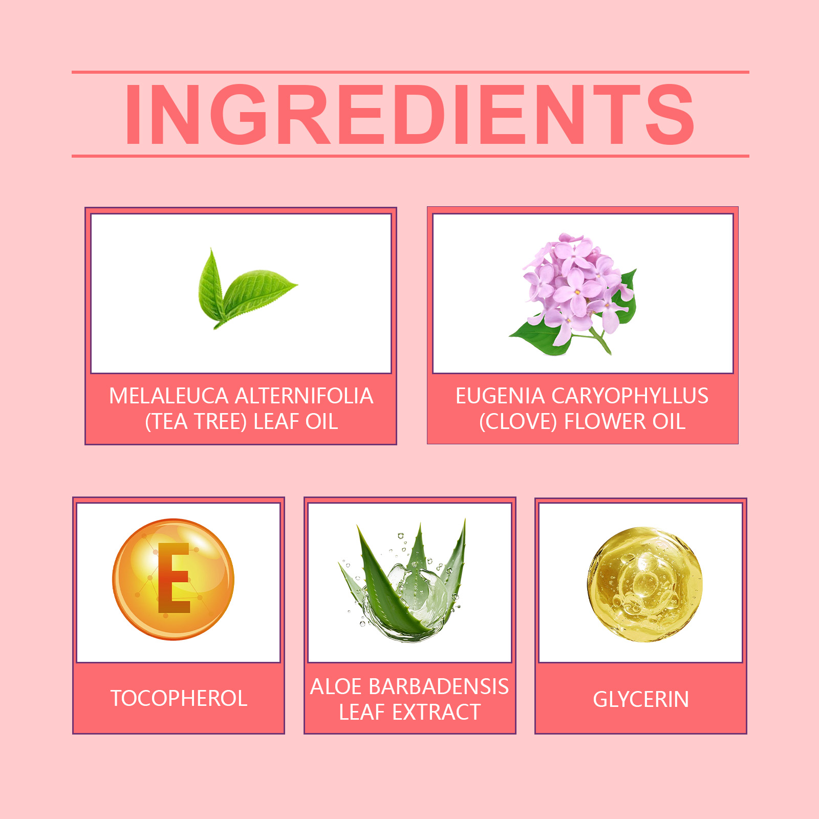 | 成分 | 茶树叶油、丁香花油、芦荟叶提取物 |