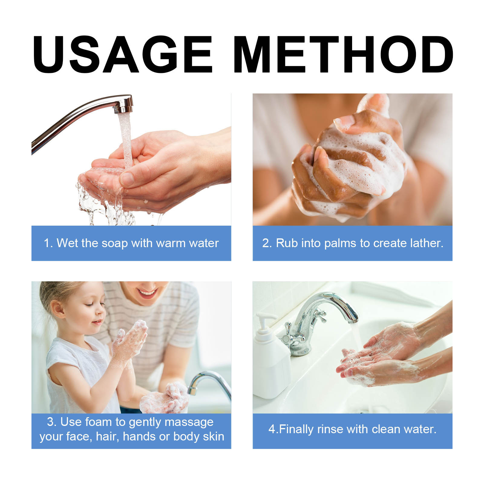 我们的沐浴清洁皂含有薰衣草蜂蜜。它可以满足清洁、保湿软化肌肤的目的,而且适合不同类型的肌肤。这是一个简单的日常清洁和护理的基本肥皂。它的使用方法很简单:1.用温水把肥皂弄湿。2.揉进手掌产生泡沫。3.用泡沫轻轻按摩你的脸、头发、手或身体皮肤。4.最后用清水冲洗干净。并且有不同的植物香味,适合男性和女性。您可以根据自己的喜好和需求进行选择。