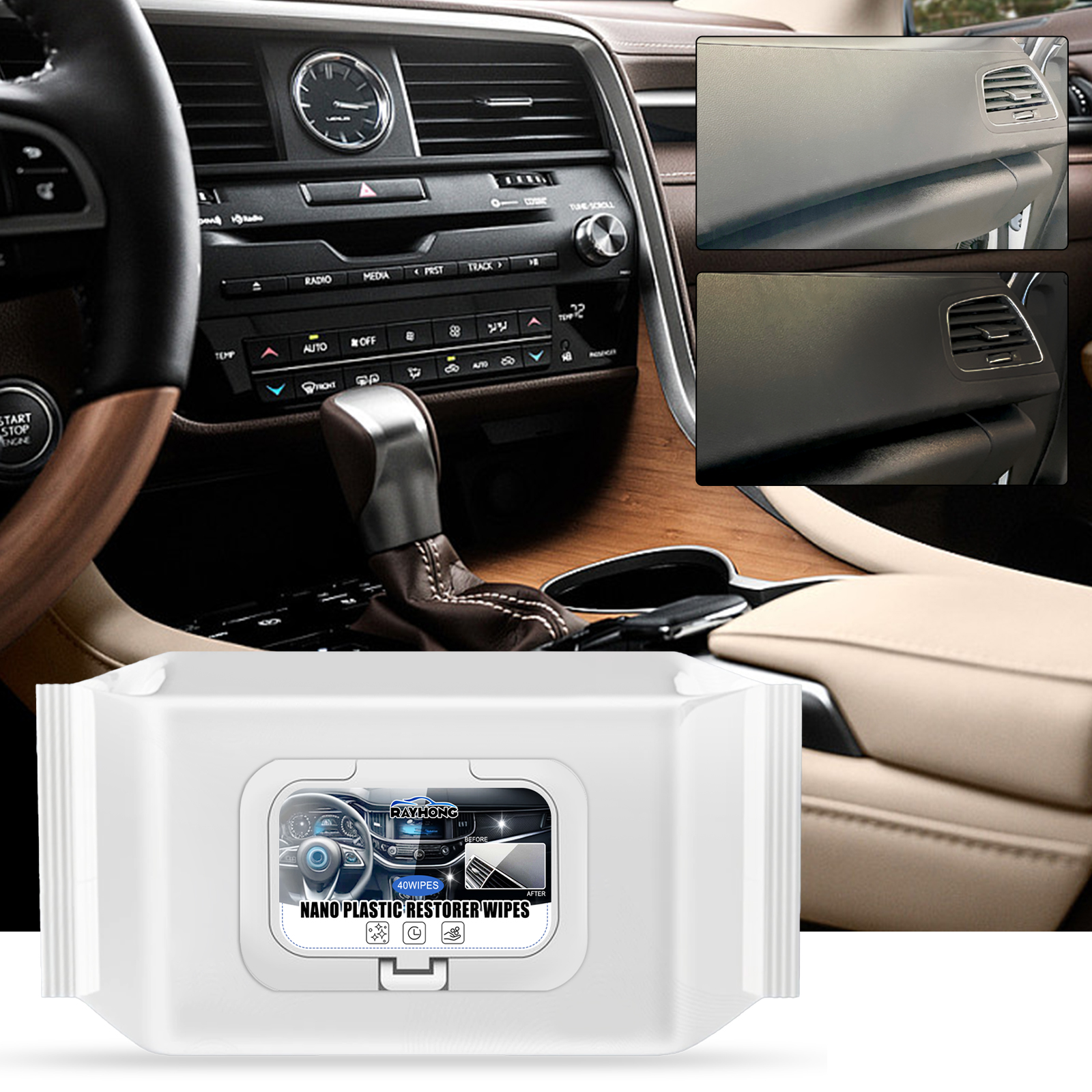 Rayhong Nano Plastic Restorer Wipes, Seat Upholstery Clean Refurbishment Quick Decontamination Wash Free Car Wipes