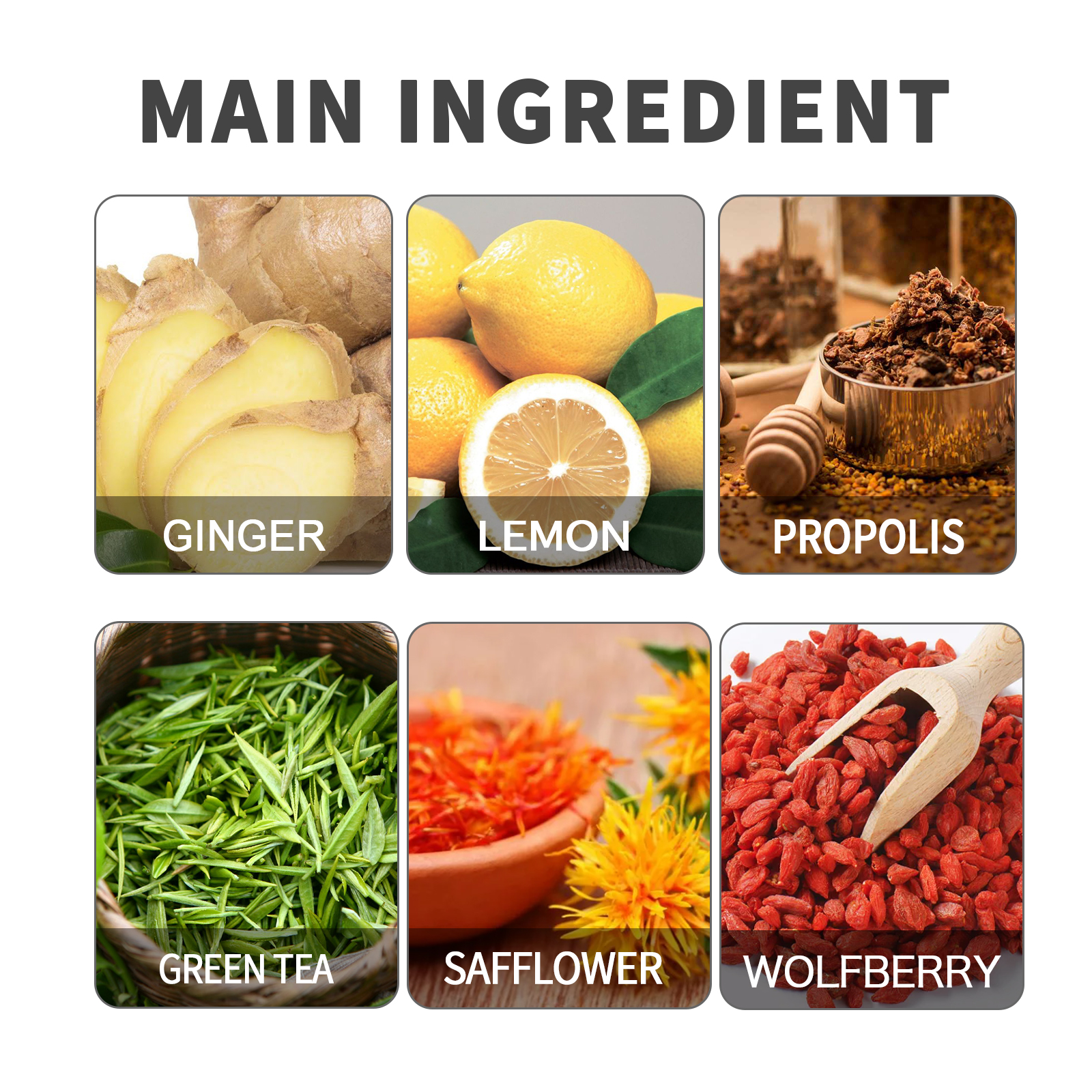 我们的塑身茶含有生姜、柠檬、蜂胶。它可以帮助减少体内液体和肿胀帮助营养吸收,帮助排出体内废物,减轻肿胀并恢复整体健康。它的使用方法很简单:1.取一包消肿茶包。2.放入杯中,用开水冲泡,搅拌均匀。3.每天坚持喝可以让效果更好。并且可以减少肿胀,帮助消化。