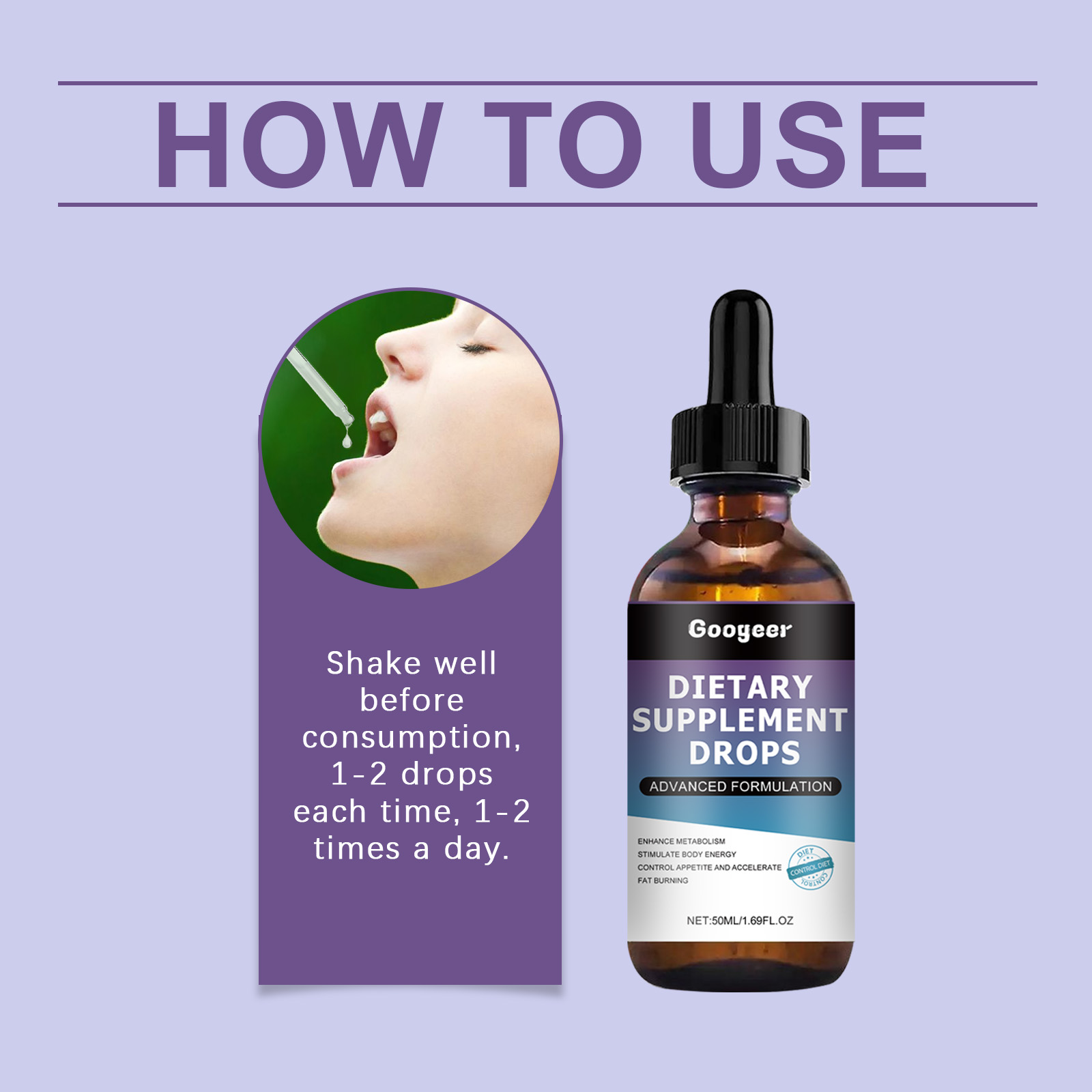 我们的饮食补充剂含有果葡提取液、枇杷提取物、中药提取物。它可以帮助提供即时和持续的能量释放,促进吸收和利用;参与体内的能量代谢过程,帮助调节酸碱平衡;有助于缓解消化不良,减少胃部不适。它的使用方法很简单:食用前摇匀,每次1-2滴,每天1-2次。饮食补充剂激活体内燃烧脂肪的力量,加快每日热量消耗。能量之源,告别疲劳。提高日常表现。