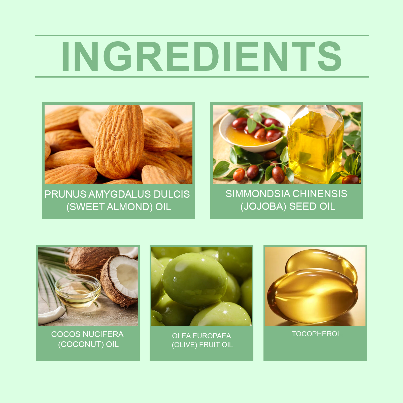 | 成分 | 甜杏仁油、荷荷巴籽油、椰子油 |