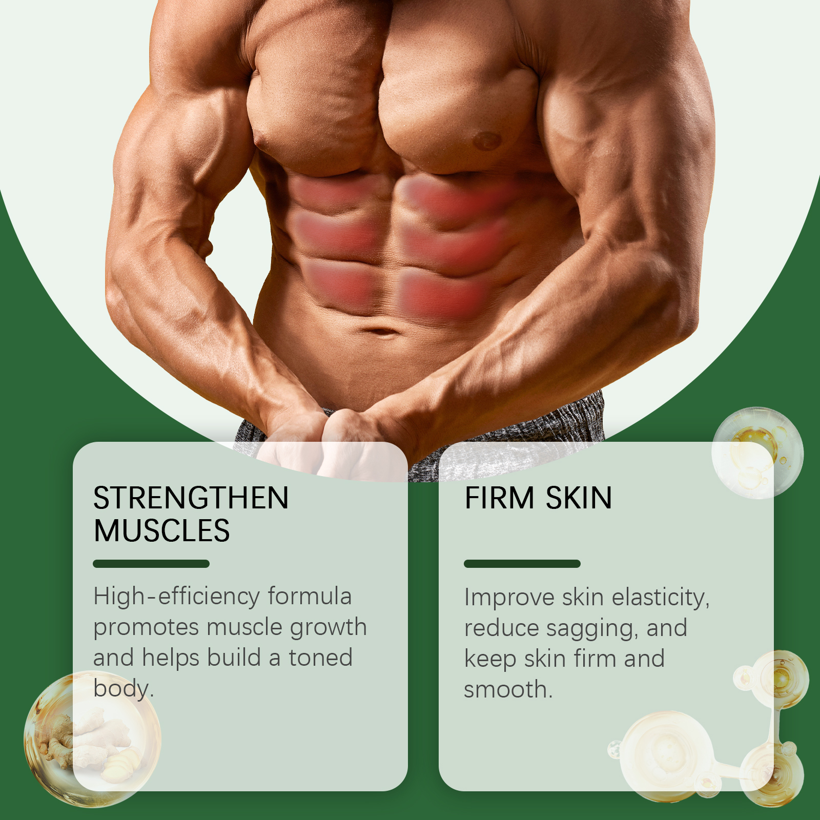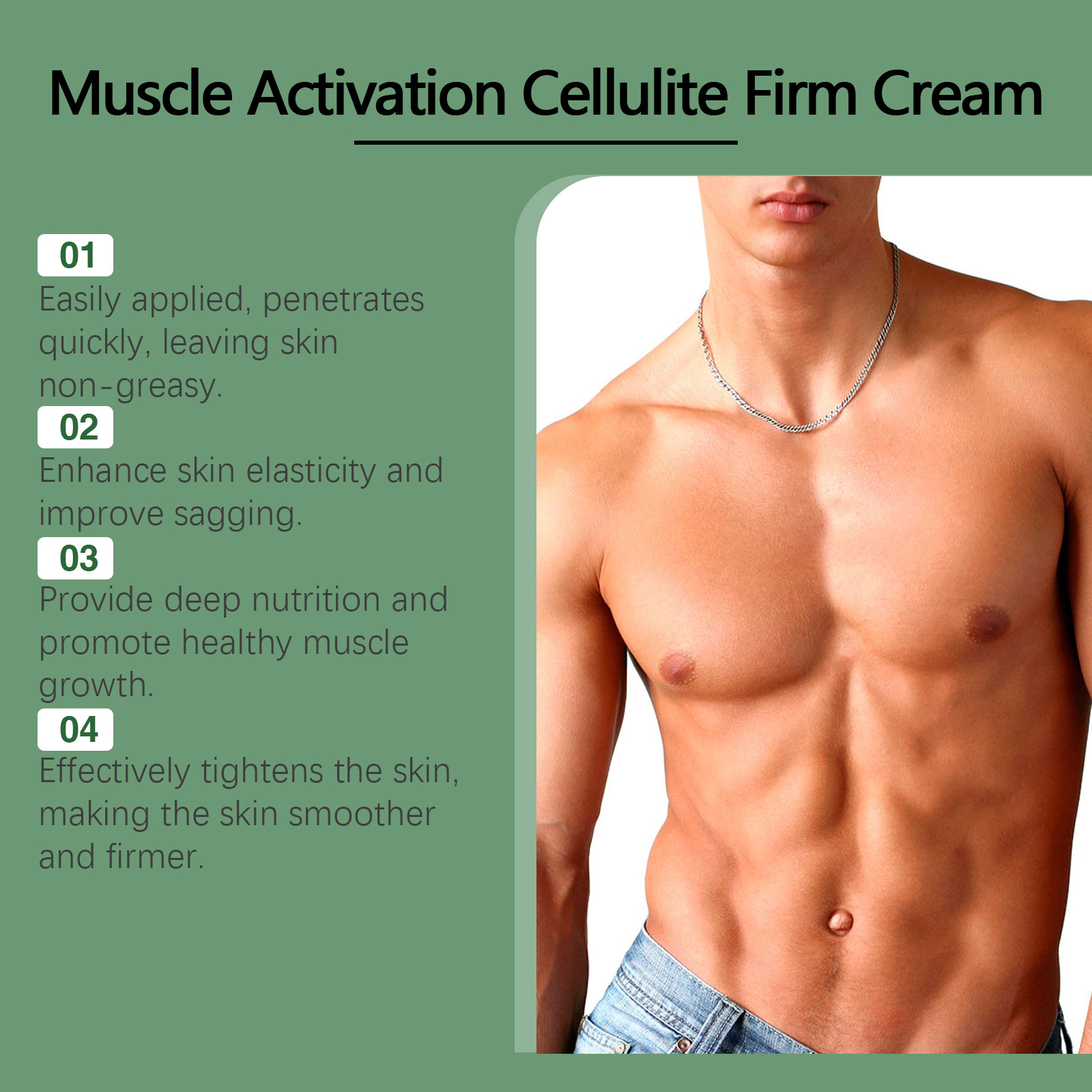 我们的肌肉护理霜含有矿油、甘油硬脂酸酯。它可以改善皮肤弹性,减少下垂,保持肌肤紧致光滑。它的使用方法很简单:彻底清洁皮肤,先干燥,取适量本品均匀涂于腹部皮肤,轻轻按摩至完全吸收。并且可以促进肌肉生长,帮助建立一个健美的身体。