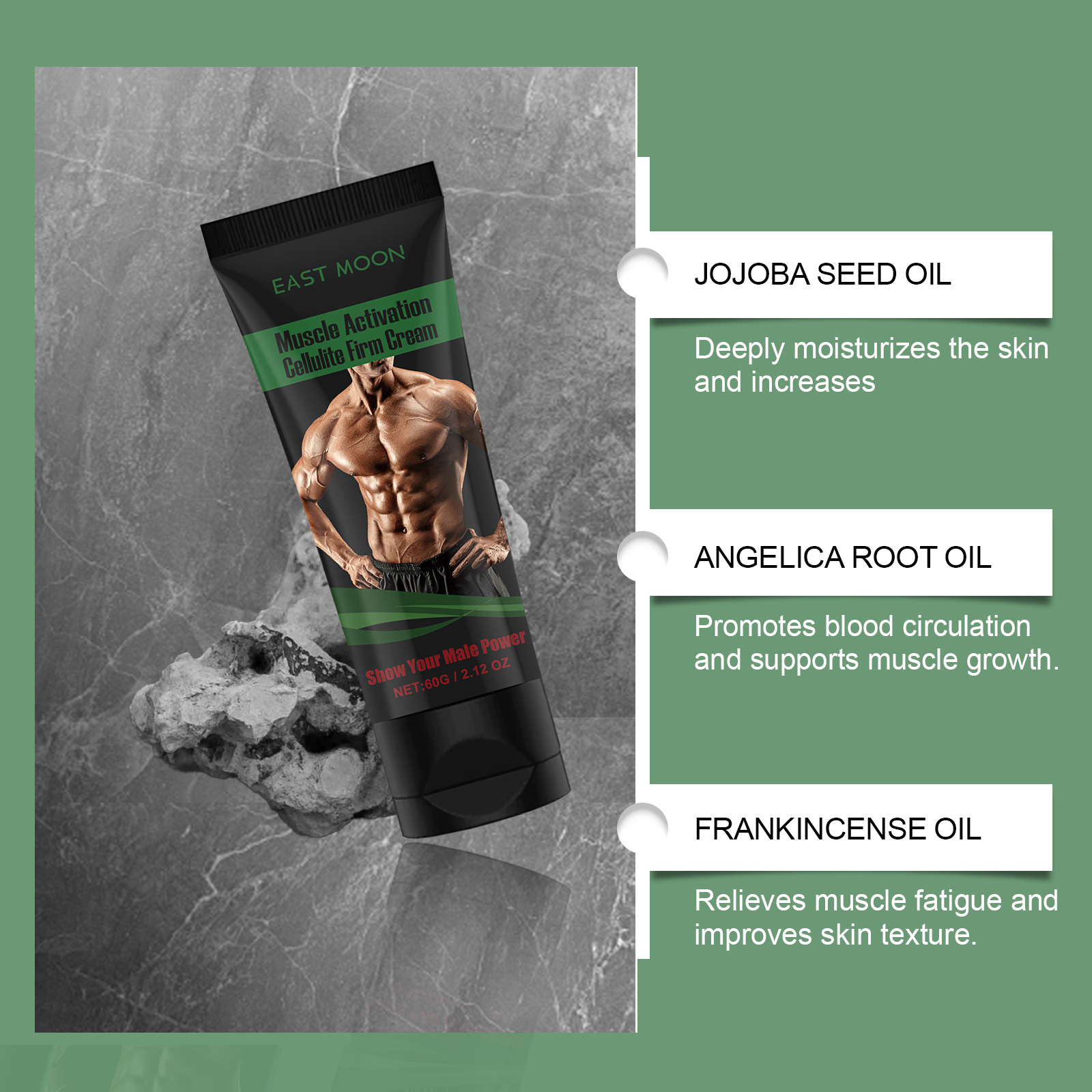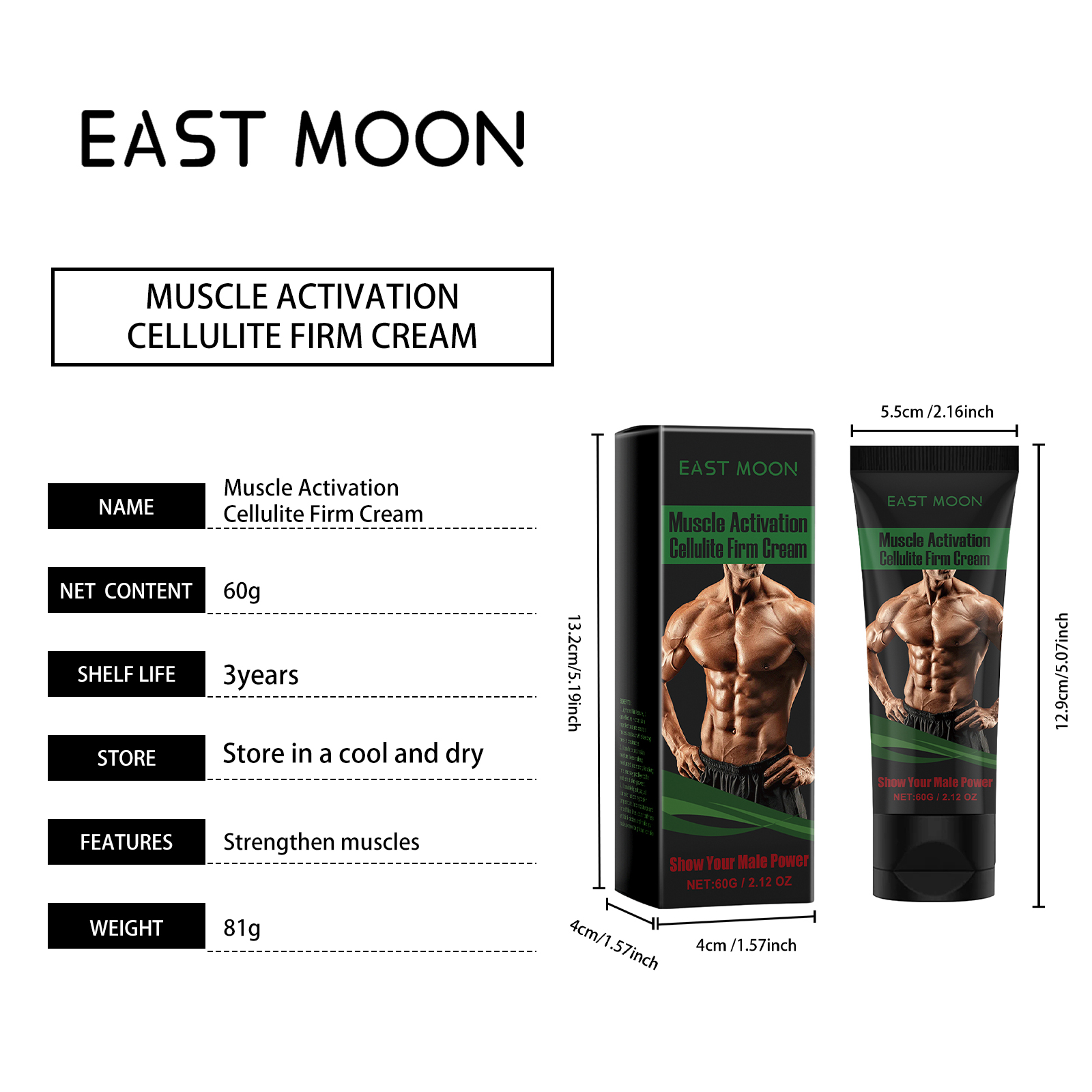 East Moon Muscle Care Cream, Men's Fitness Exercise Line Muscle Toning Body Massage Treatment