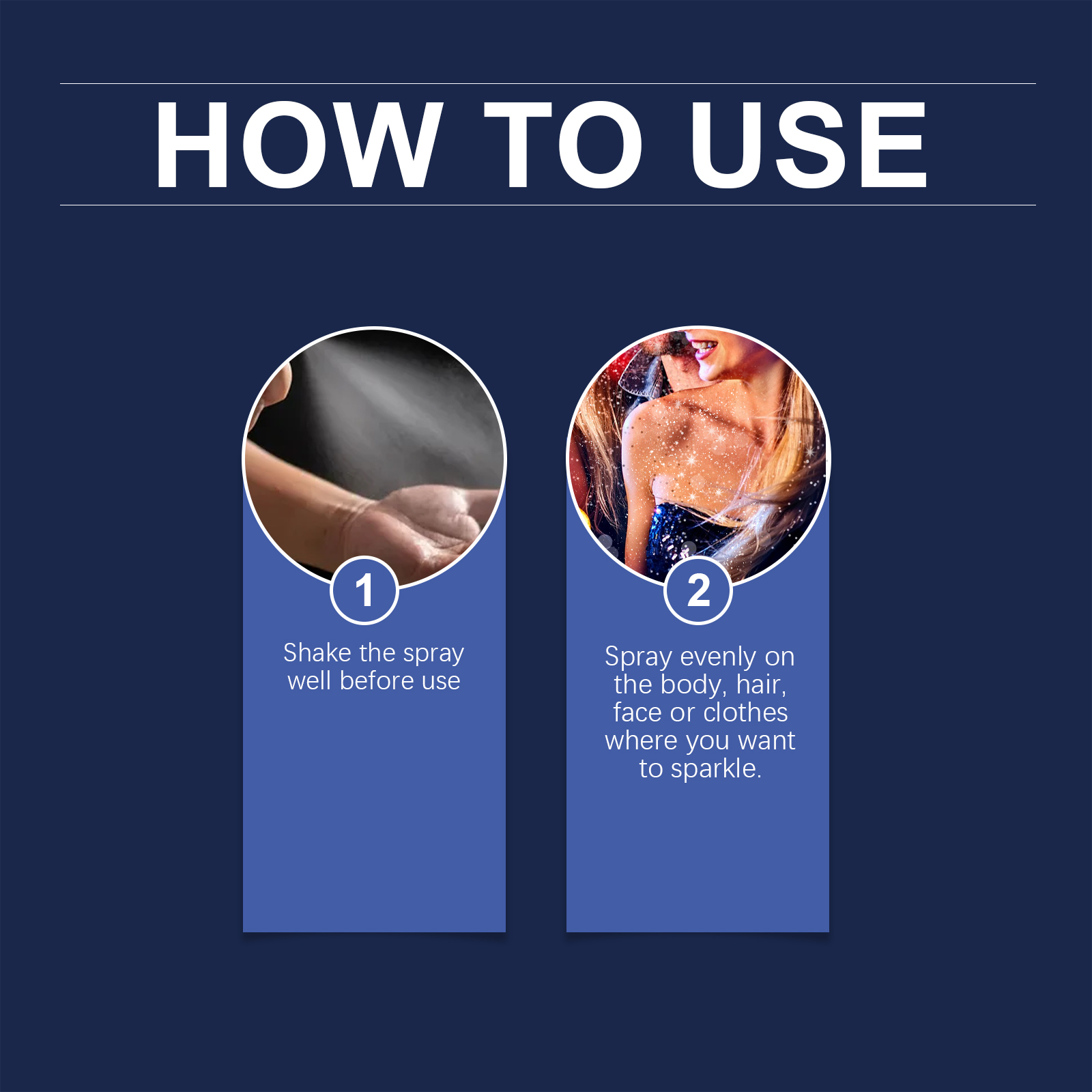 我们的身体闪粉喷雾含有云母、生育酚。它可以瞬间提升肌肤光泽,赋予迷人的亮晶晶效果,适用于各种场合。它的使用方法很简单:使用前摇匀喷雾剂,均匀地喷在身体、头发、脸上或衣服上你想要闪闪发光的地方。并且可以让你闪闪发光,让你在化妆舞会,节日或生日派对上耀眼夺目。