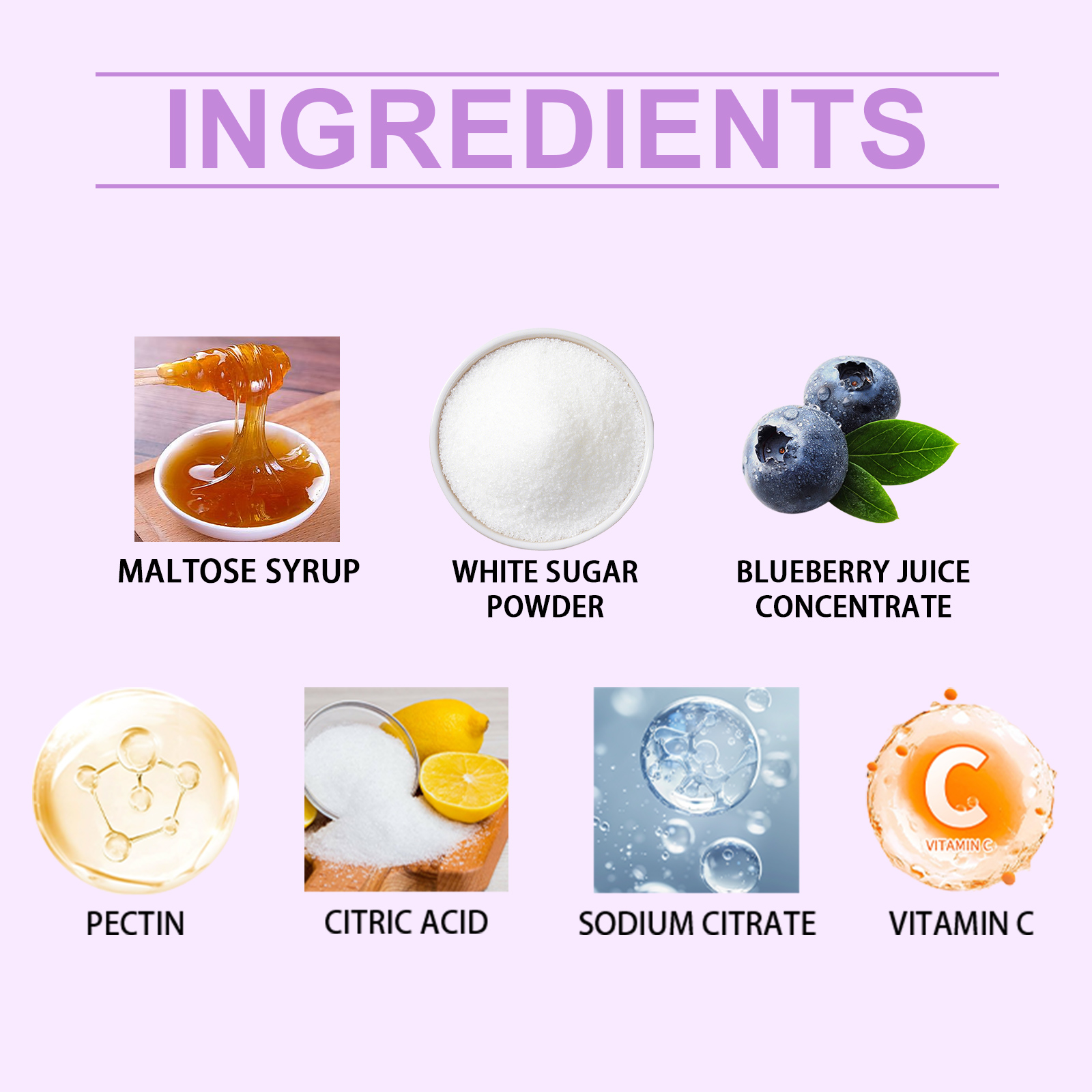 | 成分 | 麦芽糖浆、白糖粉、蓝莓浓缩汁 |