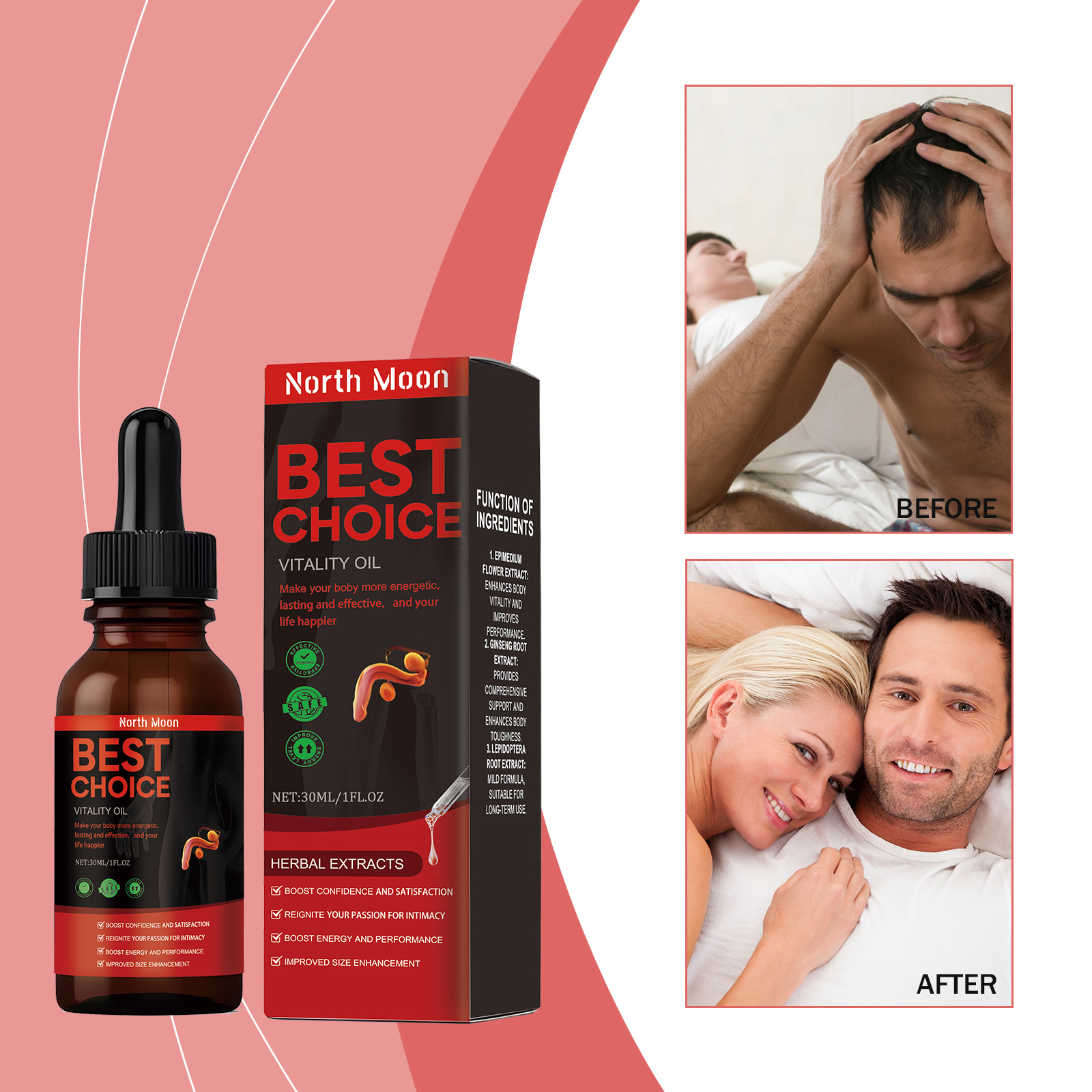 North Moon Men's Herbal Oil, Men's Vitality And Endurance Enhancement Body Massage Toning Oil