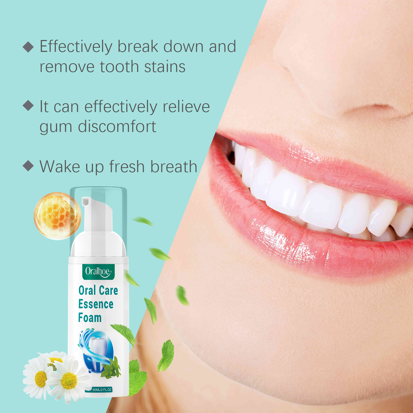 Oralhoe Mouth Whitening And Teeth Cleaning Mousse, Clean And Remove Stains Whitening Teeth Refreshing Breath Foam Mousse