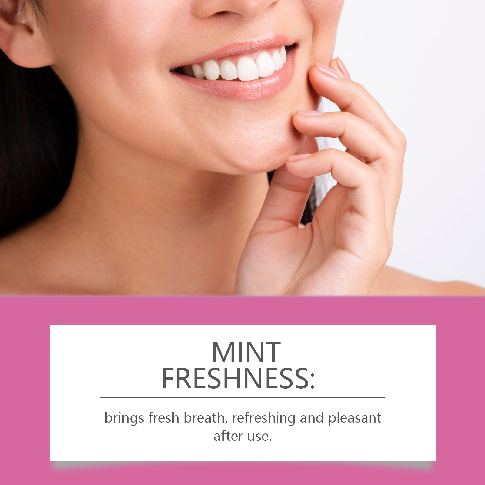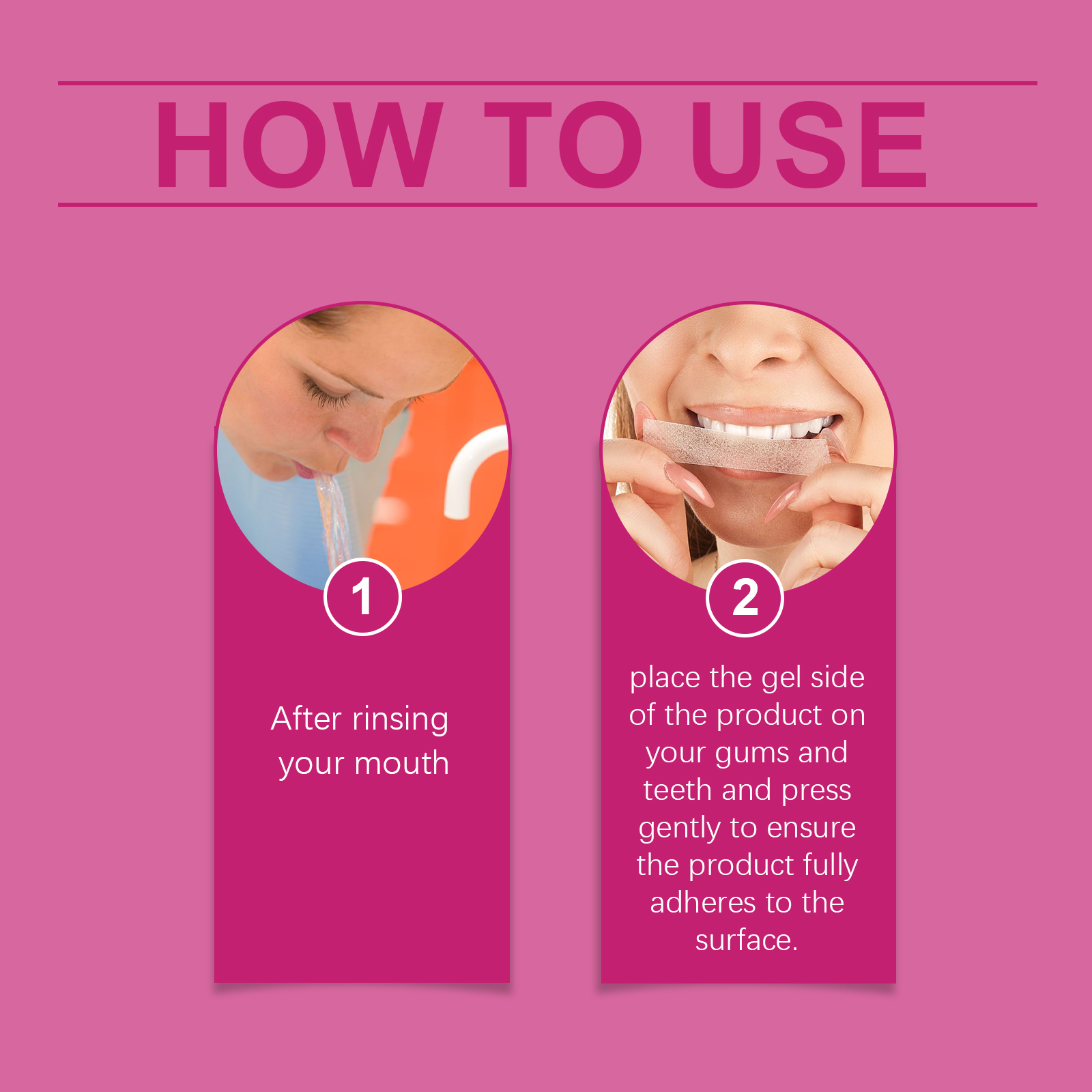 我们的炫白牙贴含有PO膜、凝胶。它可以在短时间内就能看到美白效果,带来自信的笑容。它的使用方法很简单:漱口后,将产品的凝胶面放在牙龈和牙齿上,轻轻按压,确保产品完全贴合表面。并且使用后带来清新口气,清爽怡人。