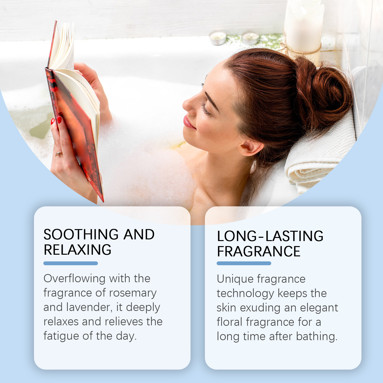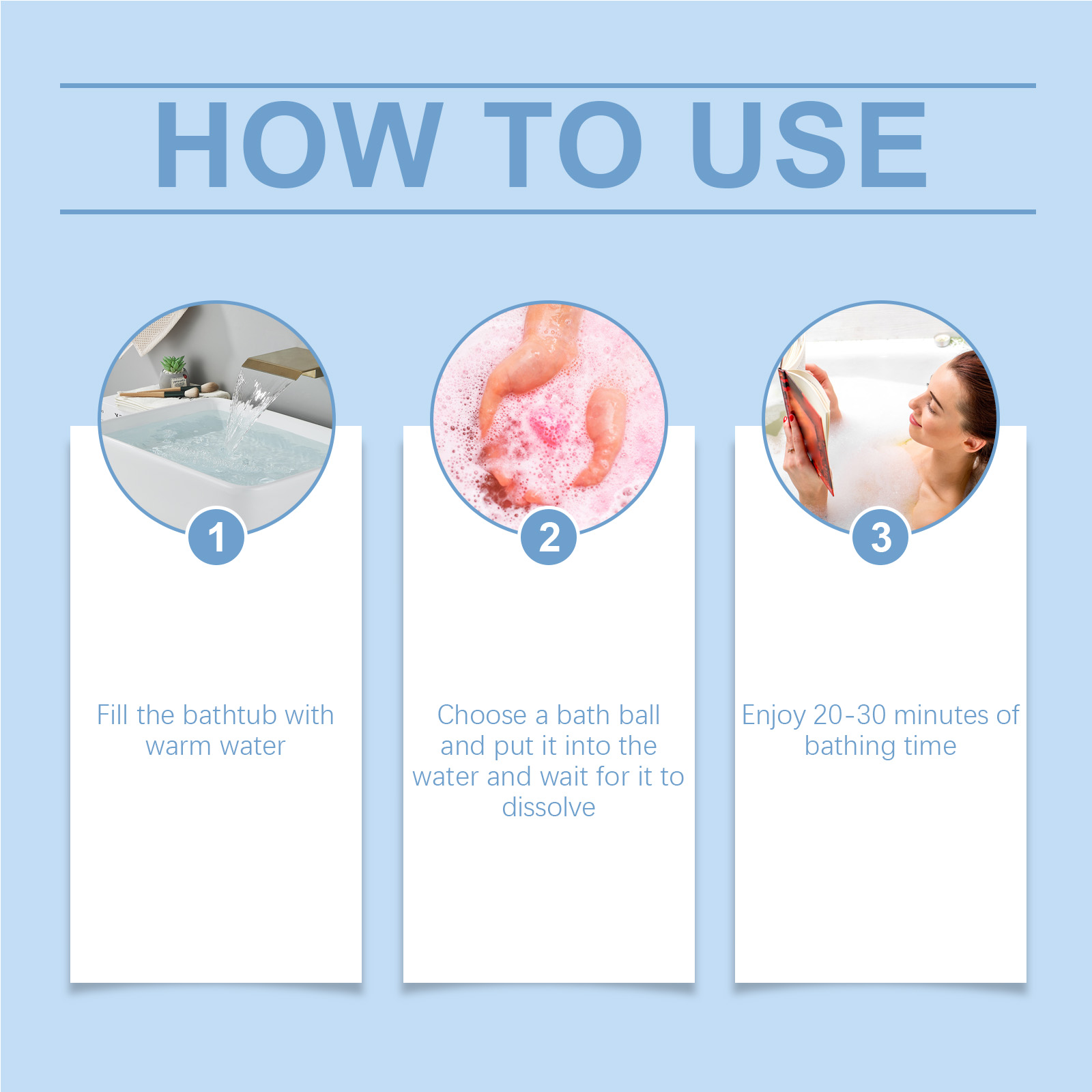 我们的泡泡沐浴球含有薰衣草花提取物、玫瑰花提取物。它可以,让肌肤在沐浴后长时间散发出优雅的花香。它的使用方法很简单:在浴缸里放满温水,选择一个沐浴球,放入水中,等待它溶解,享受20-30分钟的沐浴时间。 并且可以满溢着迷迭香和薰衣草的香味,深深地放松和解除一天的疲劳。