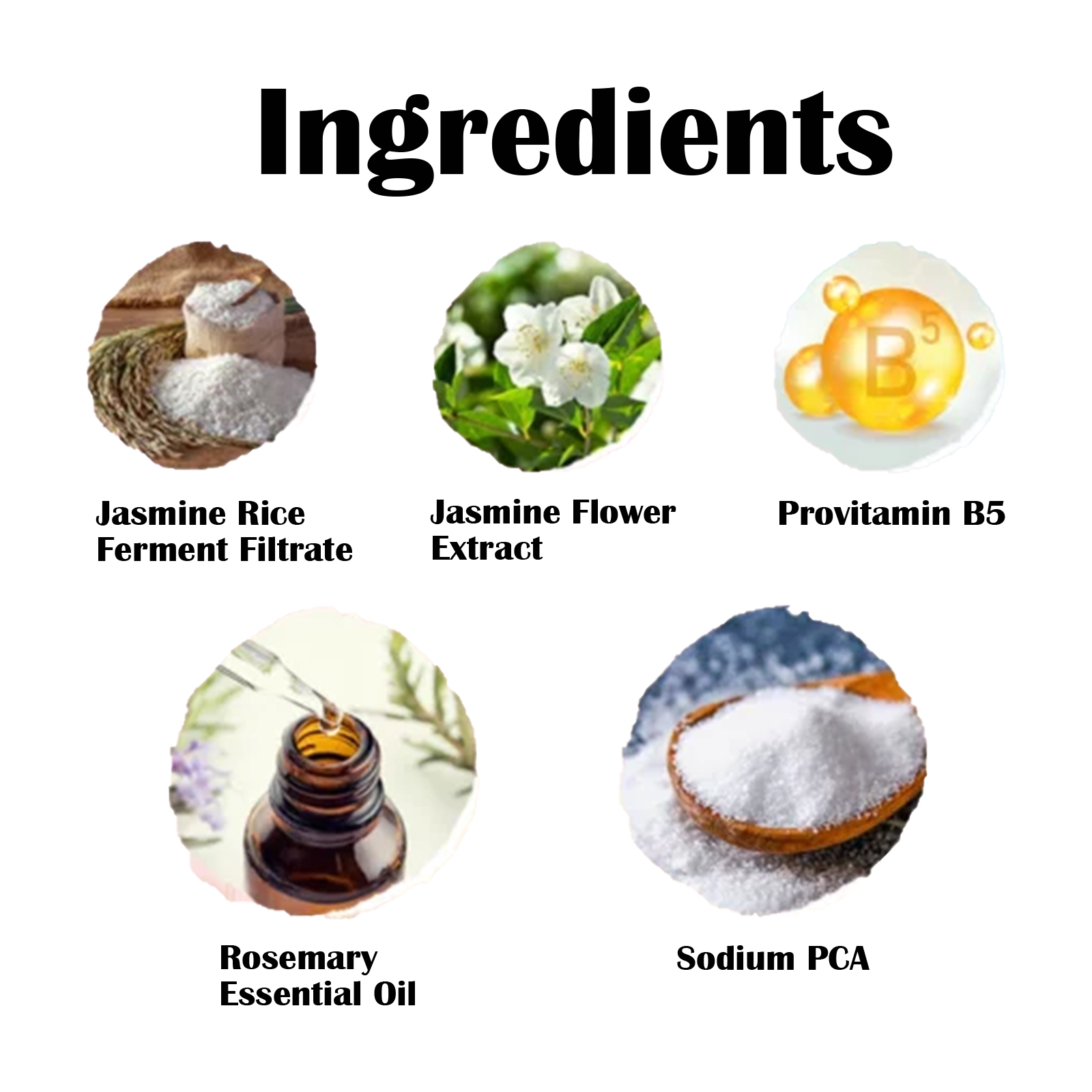 | 成分 | 茉莉米发酵滤液、茉莉花提取物、维生素原B5 |